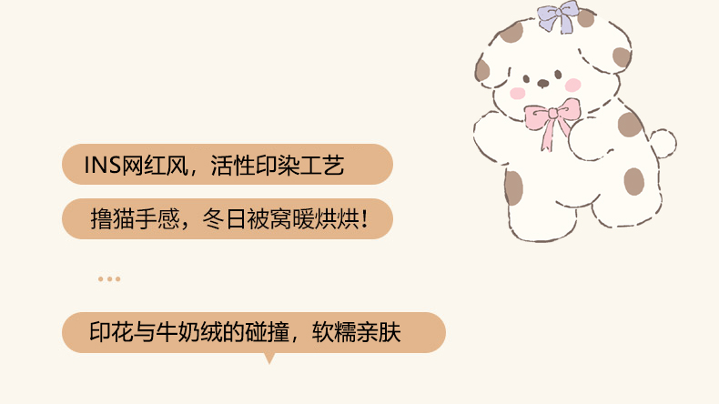 商品名称:金鑫汇家纺 2025年加厚高克重A类牛奶绒单枕套 云绒小狗