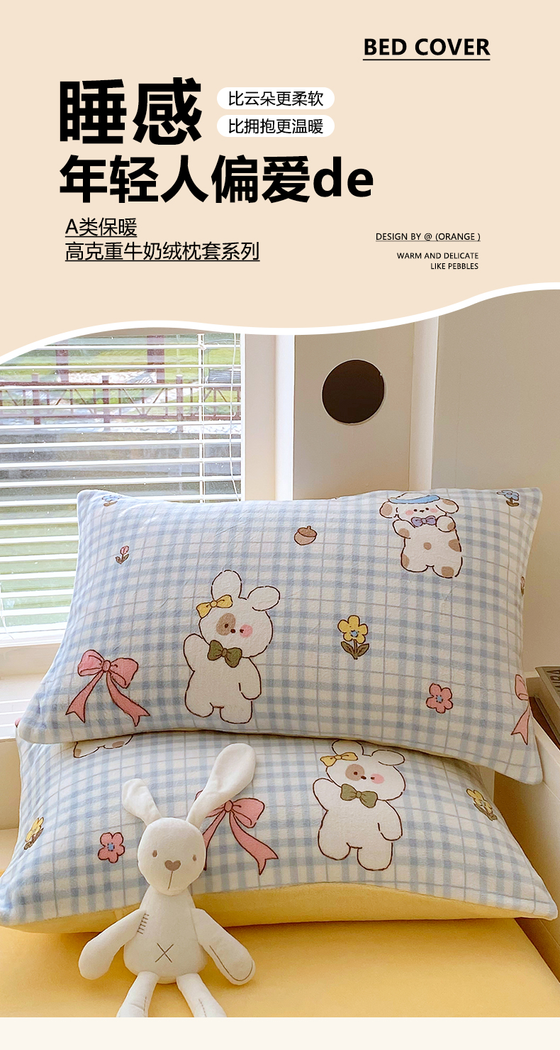 金鑫汇家纺 2025年加厚高克重A类牛奶绒单枕套 云绒小狗