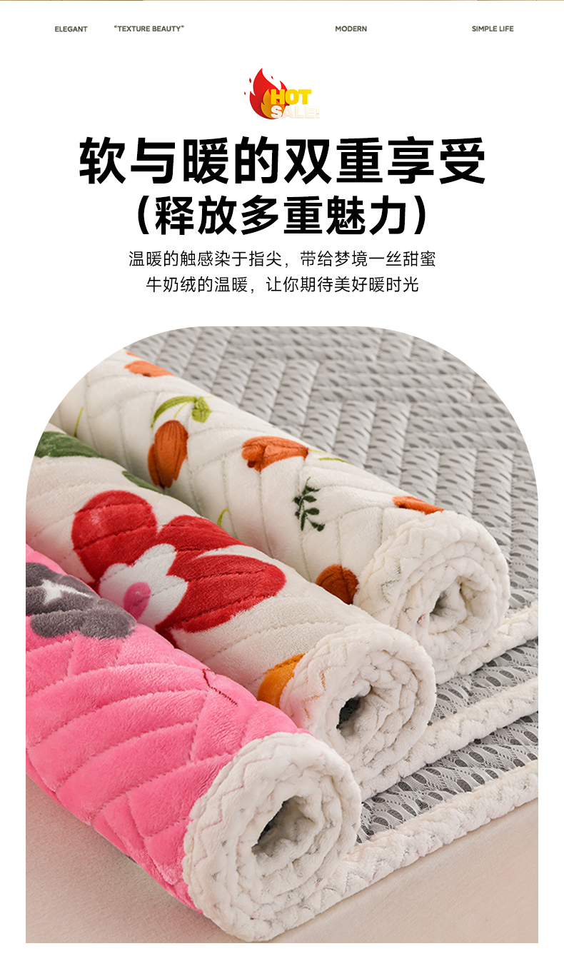 (总)圣靓家纺 2025新款牛奶绒加厚保暖夹棉床褥床垫,伊人,彩虹,繁花,简尚,年华,暖阳,晚安,夜曲,约定,组合图
