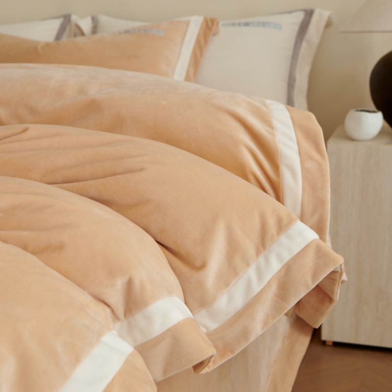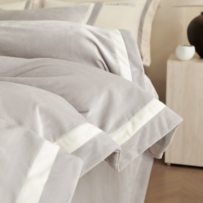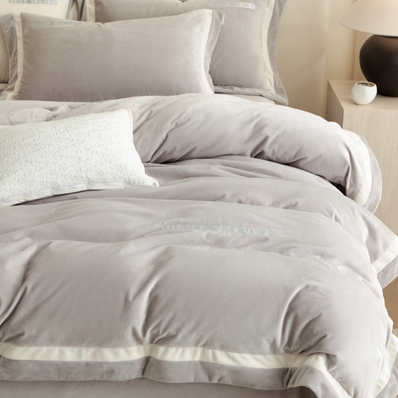 (总)淼铭家纺 2025秋冬新款婴肤绒双拼绣花四件套-雅韵系列,雅韵白,雅韵粉,雅韵灰,雅韵驼,雅韵紫