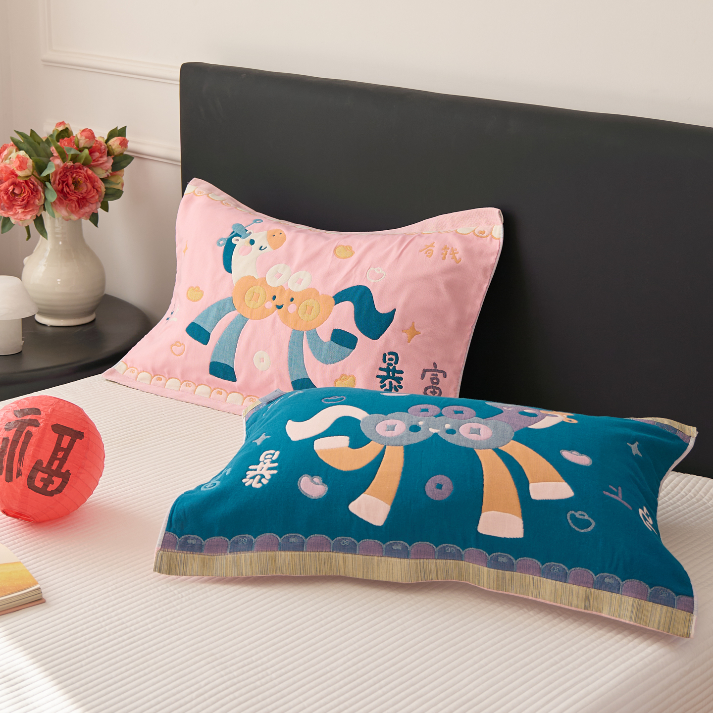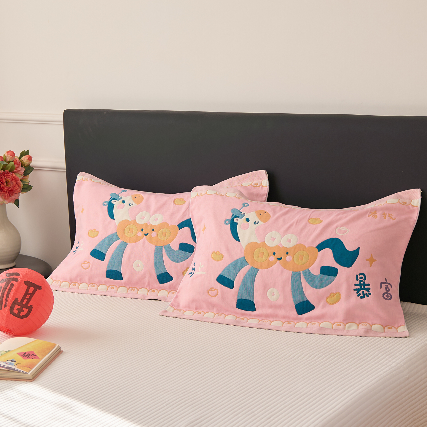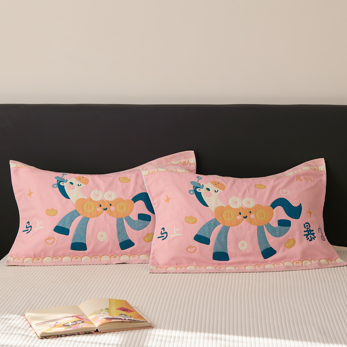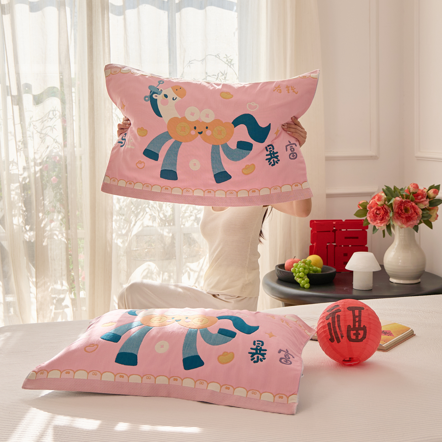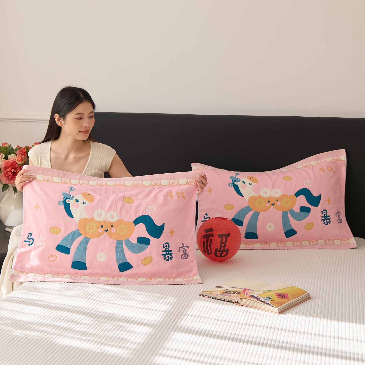 沐瑟家纺 2026新款纯棉八层枕巾-马 马上有钱