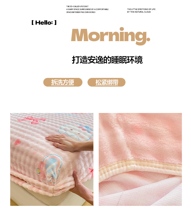• 91家纺网 家纺一手货源 找家纺 眠势力 2025新款暖绒泡泡床笠单件冬季保暖床罩牛奶绒床垫保护套 樱桃猫咪【暖绒泡泡床笠】