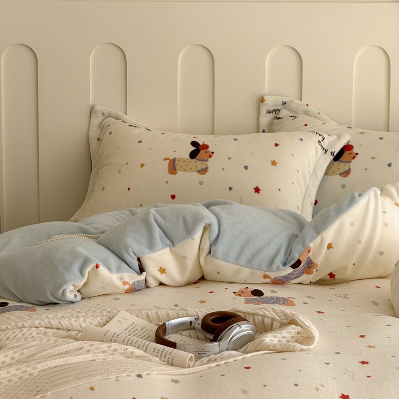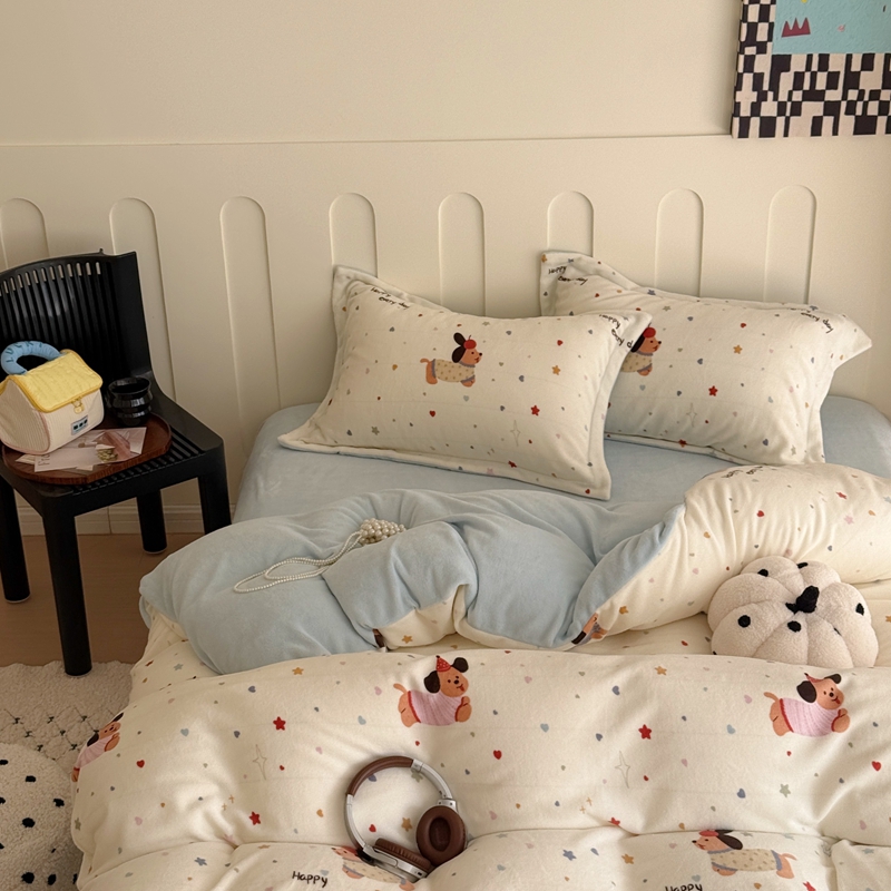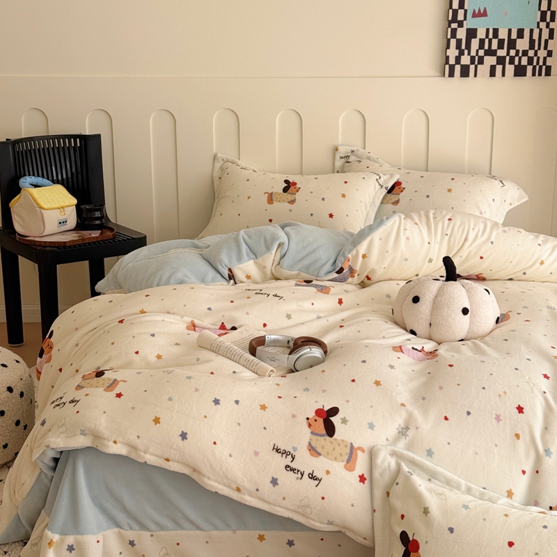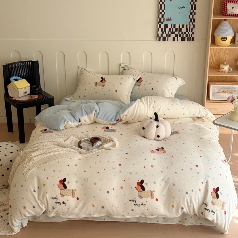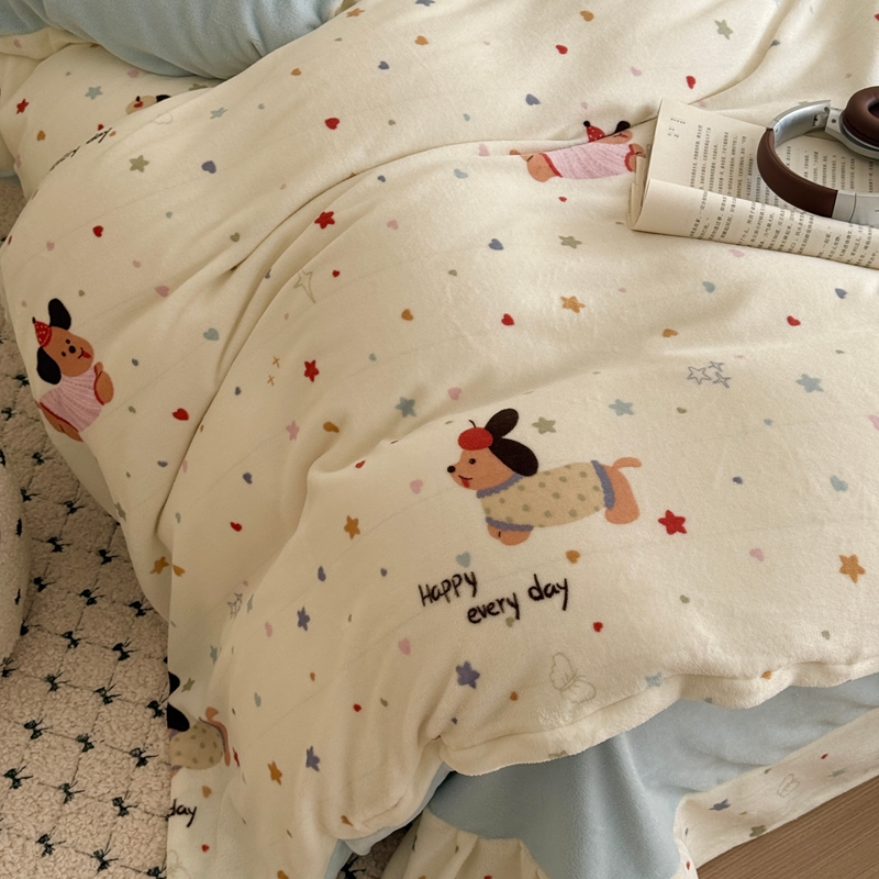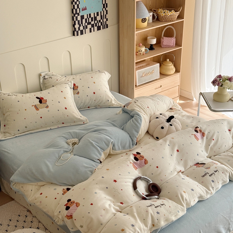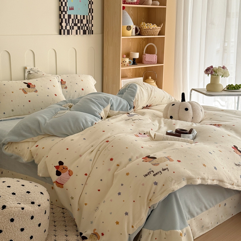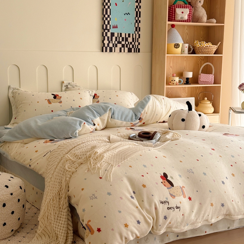于果 2025新款牛奶绒印花四件套 童趣星海