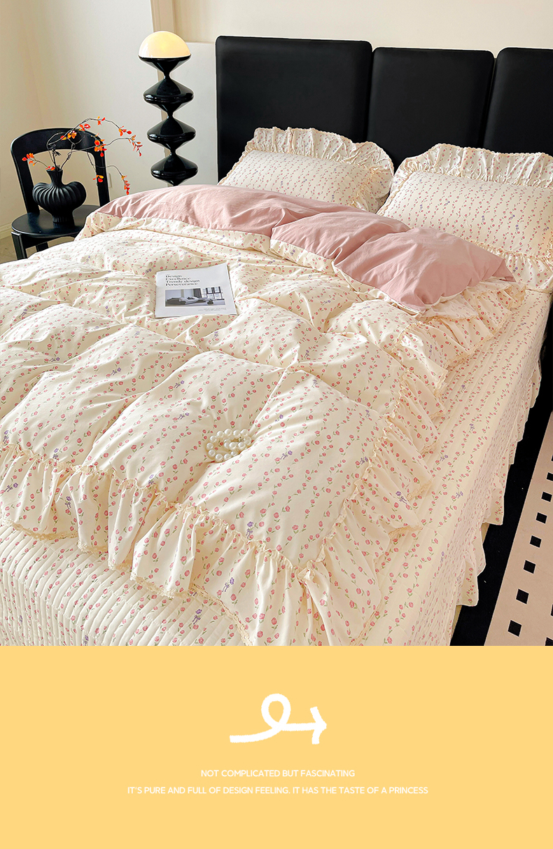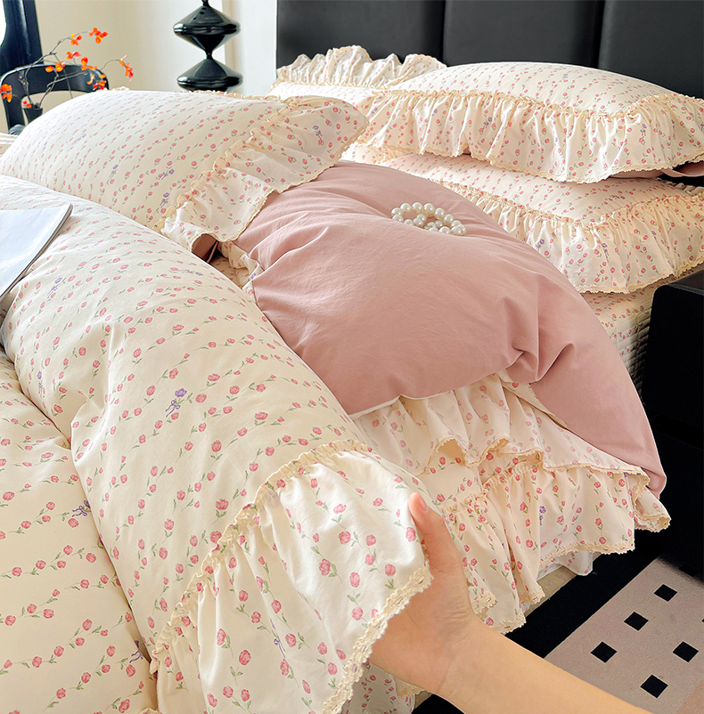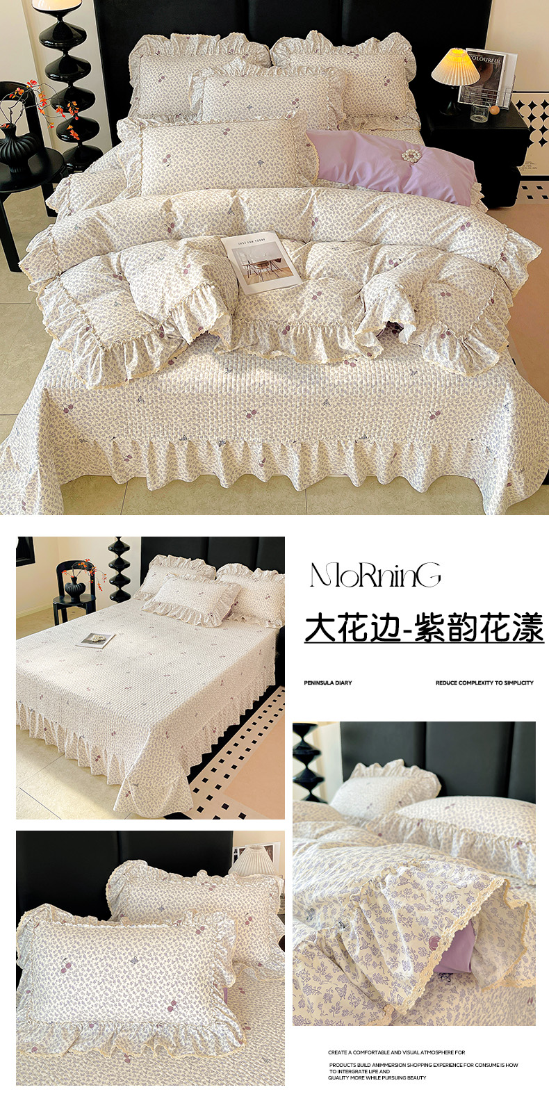 当前位置: 91家纺网 > 商品网购 > 床品套件 > 四件套 > 其它四件套 > 富米莱(原臻工厂) 2026新款法式大花边A类古法仿棉云感纱床盖床裙四件套 大花边-花梦蔓