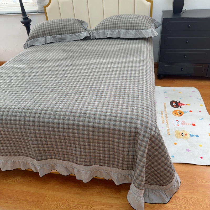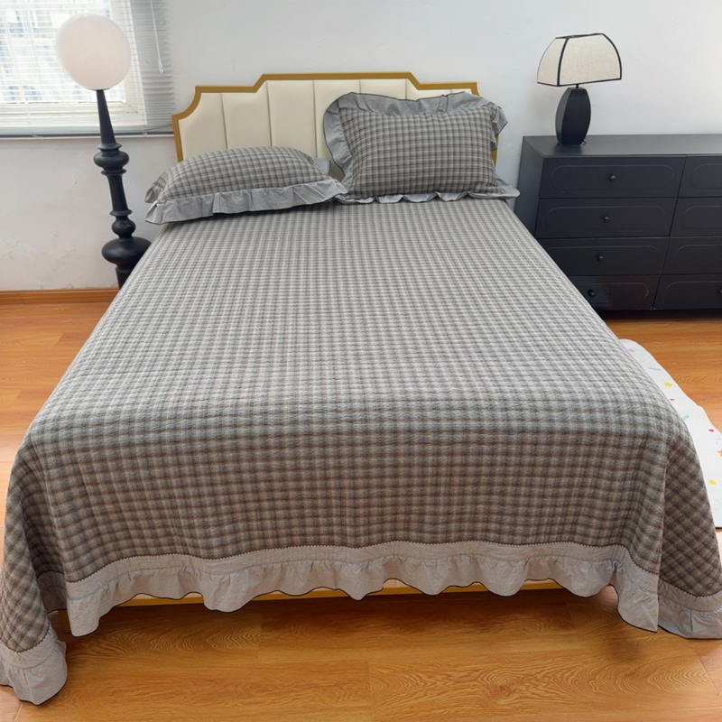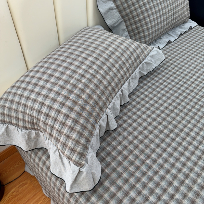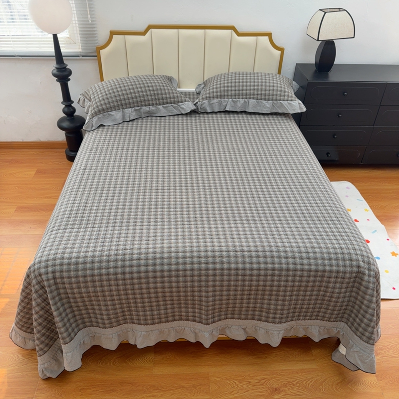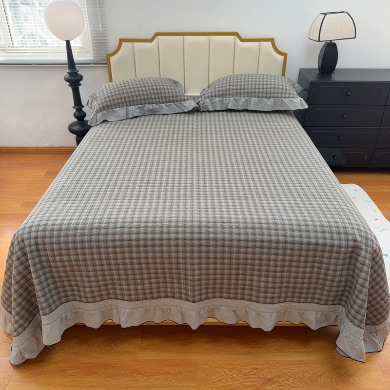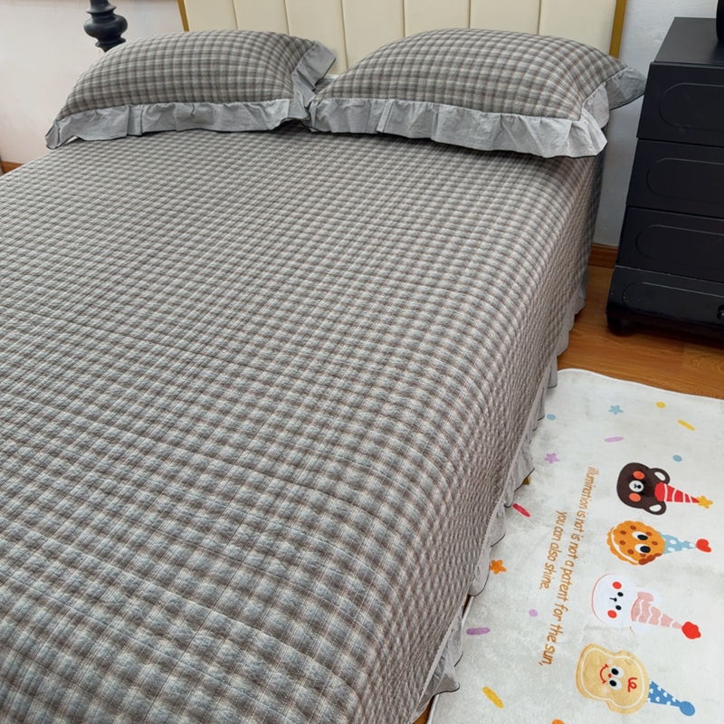 暖居 2026年新款全棉色织水洗棉高温砂洗床盖三件套四件套 可可灰
