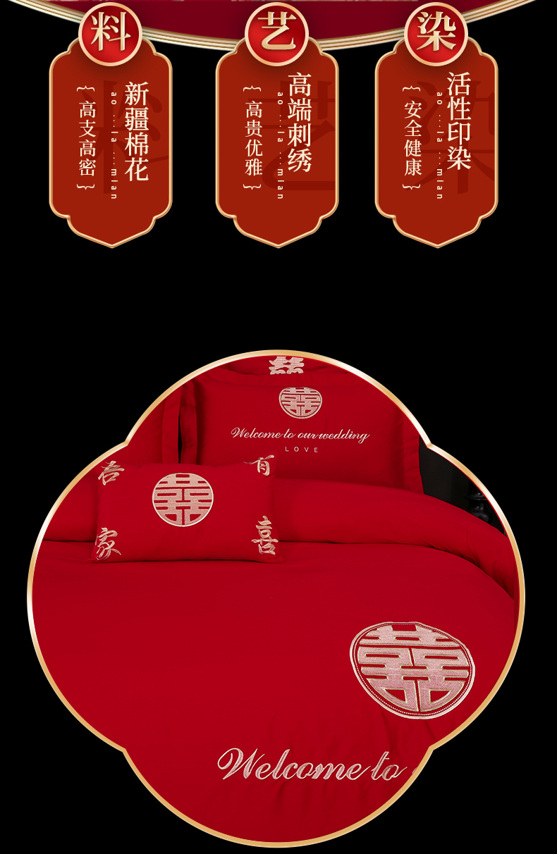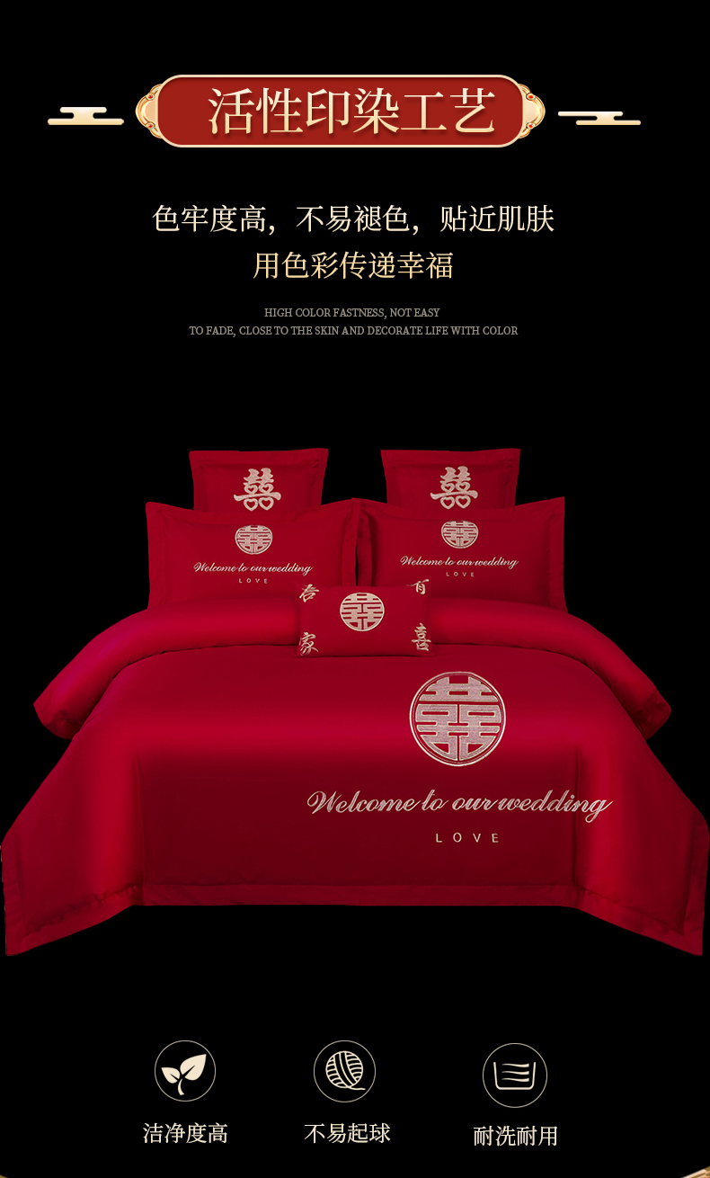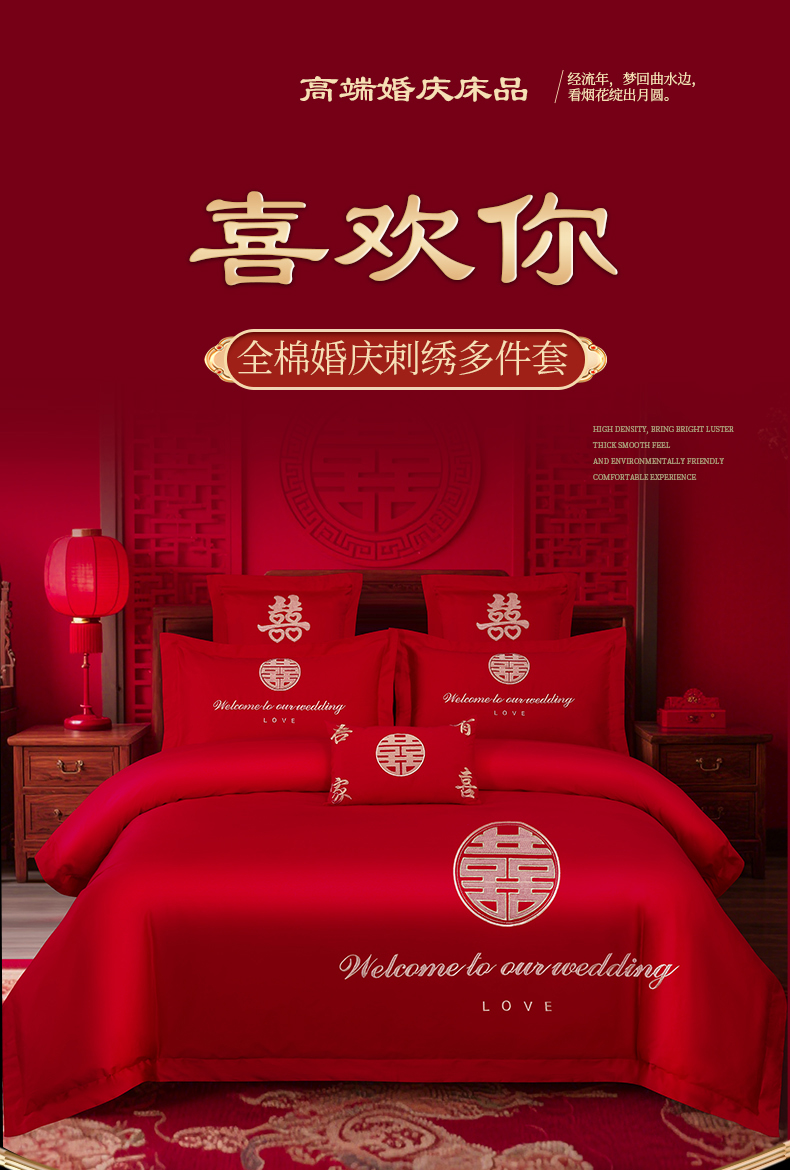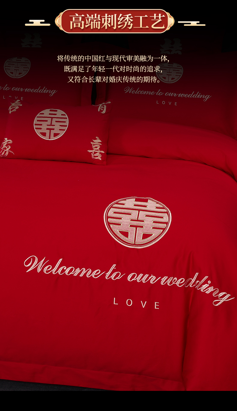 当前位置: 91家纺网 > 商品网购 > 床品套件 > 四件套 > 婚庆四件套 > 浩情国际婚庆供货中心 2026新款100%全棉长绒棉纯棉婚庆四件套结婚刺绣六件套多件套长期供货 喜欢你