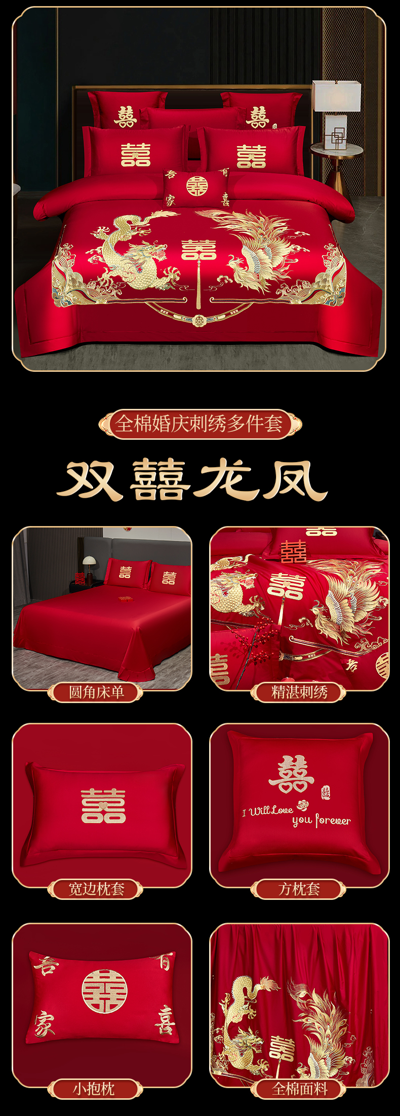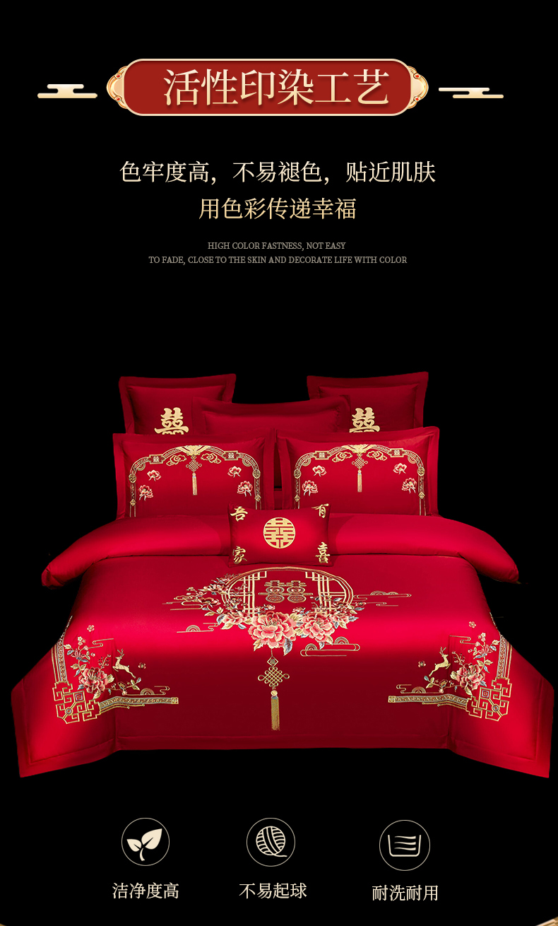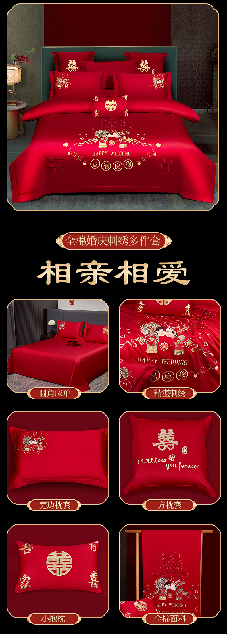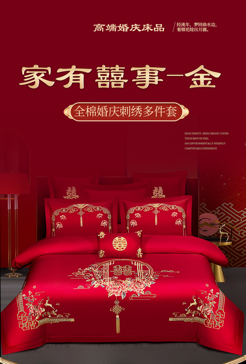 当前位置: 91家纺网 > 商品网购 > 床品套件 > 四件套 > 婚庆四件套 > 浩情国际婚庆供货中心 2026新款100%全棉长绒棉纯棉婚庆四件套结婚刺绣六件套多件套长期供货 家有囍事-金