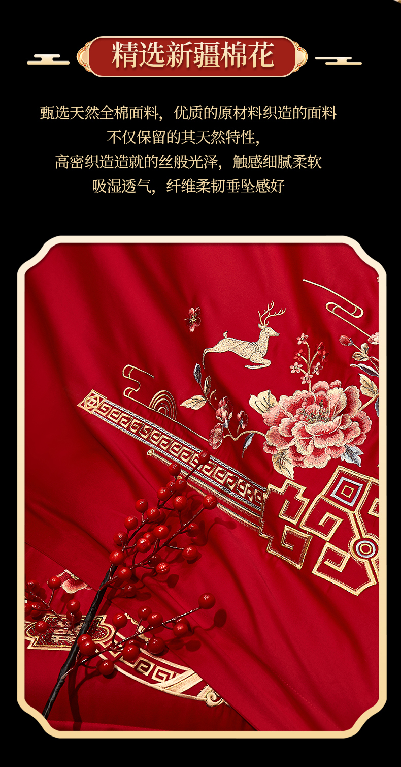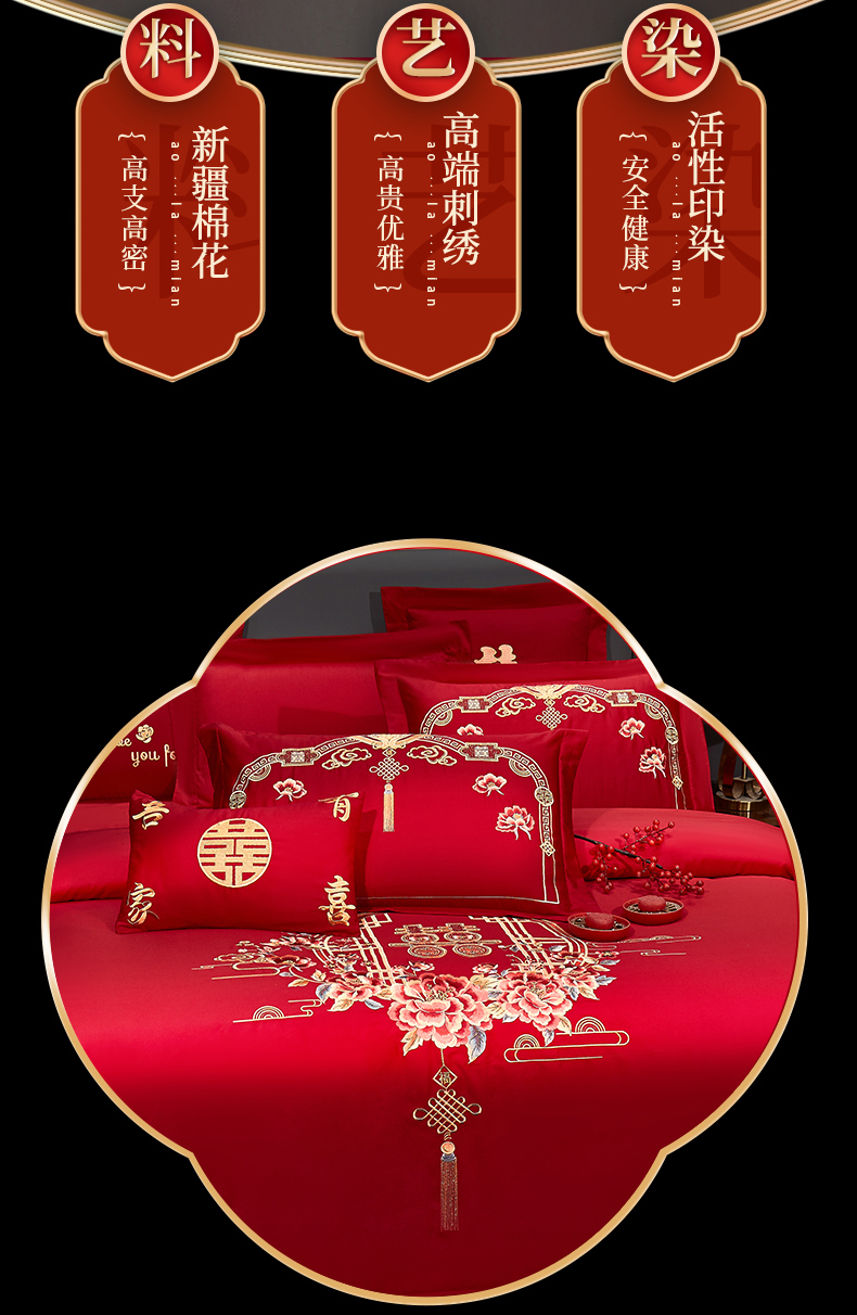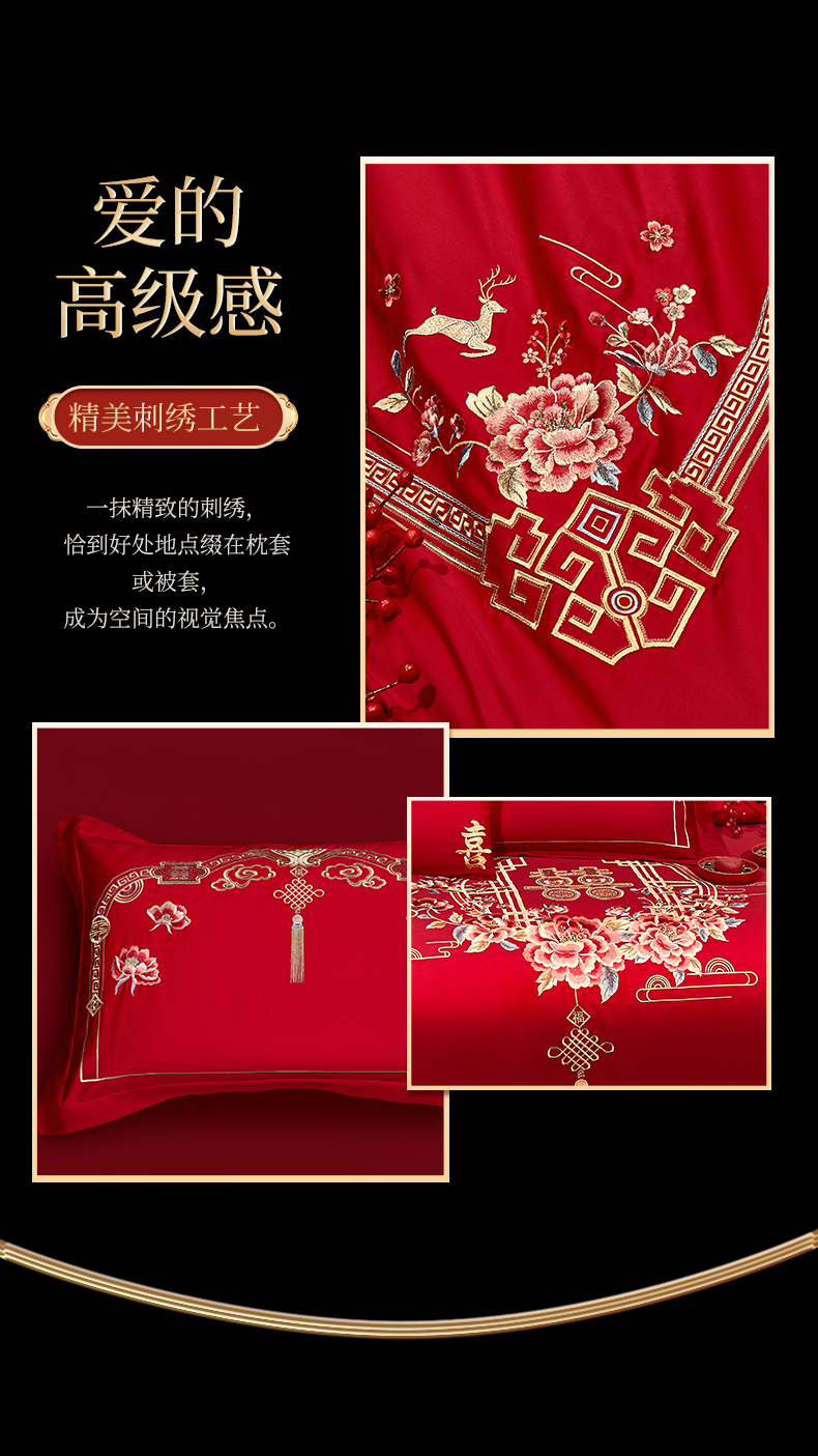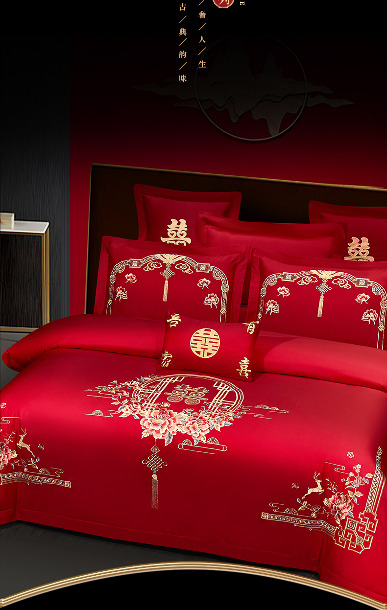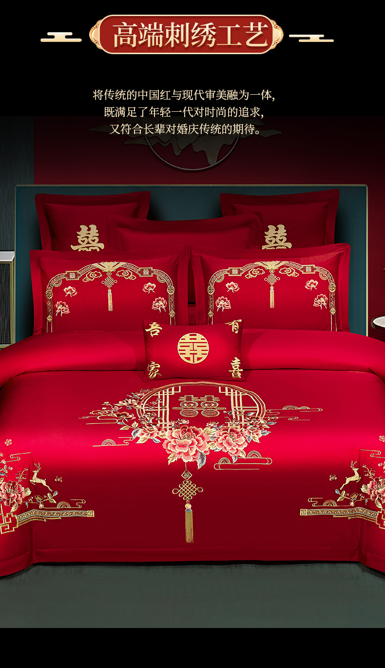当前位置: 91家纺网 > 商品网购 > 床品套件 > 四件套 > 婚庆四件套 > 浩情国际婚庆供货中心 2026新款100%全棉长绒棉纯棉婚庆四件套结婚刺绣六件套多件套长期供货 家有囍事-金