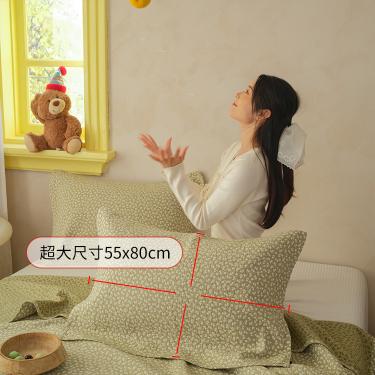 沐瑟家纺 2026新款全棉四层纱布无印枕巾 枫叶-绿色