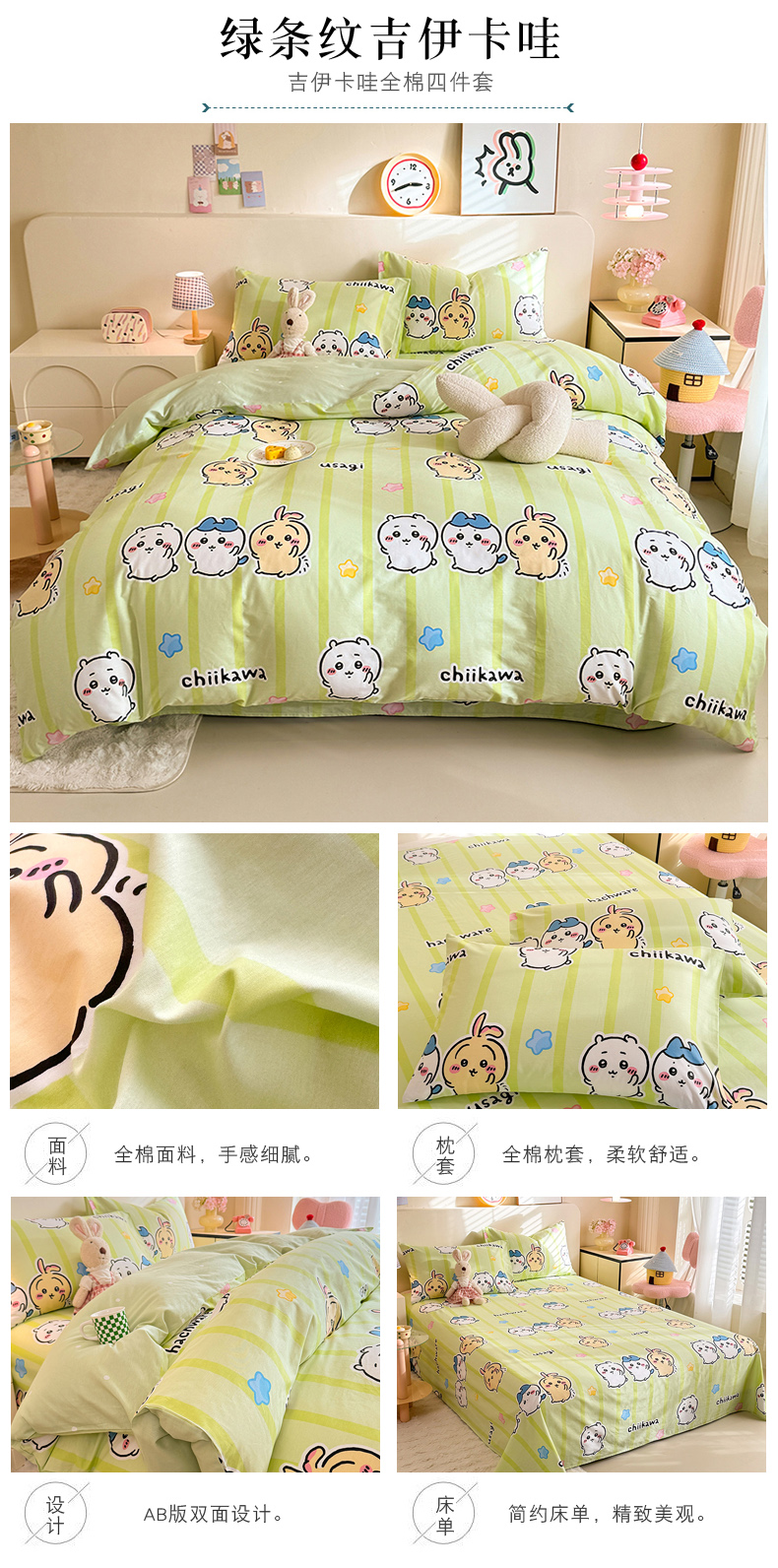 (总)美达家纺 2026新款正版授权吉伊卡哇全棉纯棉四件套,格子吉伊卡哇,可爱吉伊卡哇,绿条纹吉伊卡哇,圈圈吉伊卡哇,小八吉伊卡哇