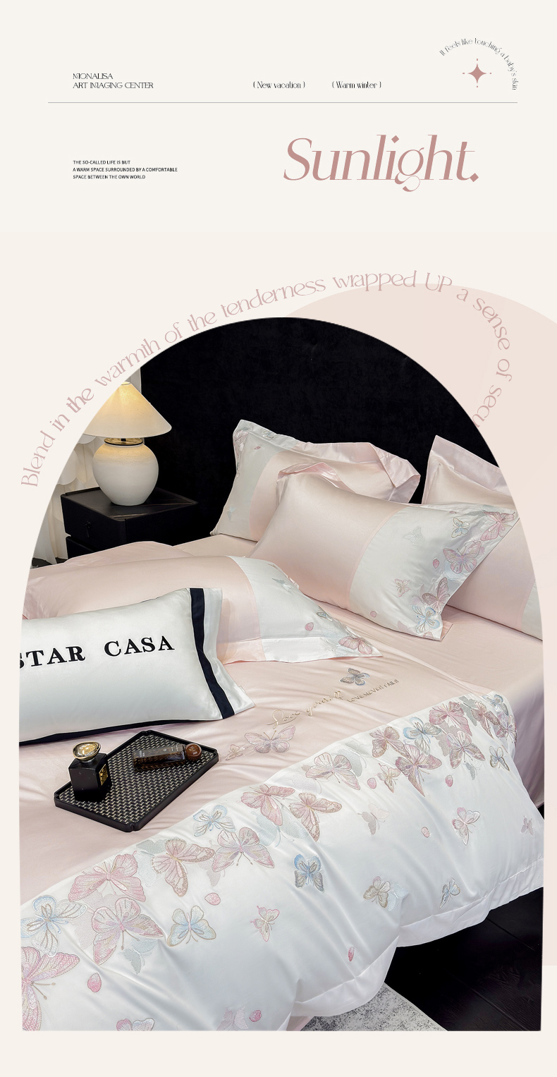 (总)星蕴家纺 2026新款贡缎长绒棉四件套-悦蝶,悦蝶-天空蓝,悦蝶-浪漫粉,悦蝶-优雅紫,悦蝶-奶油黄,悦蝶-清新绿
