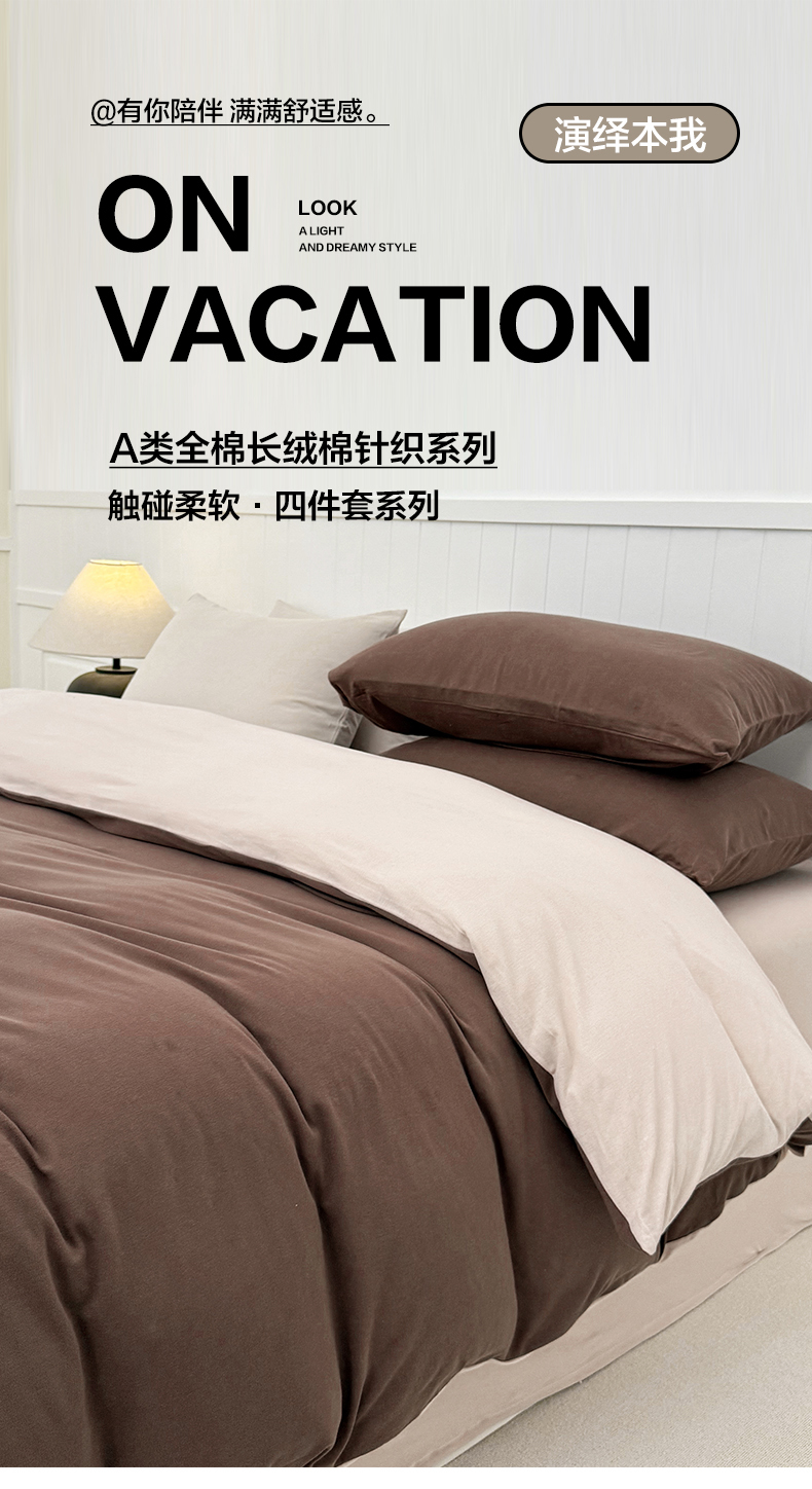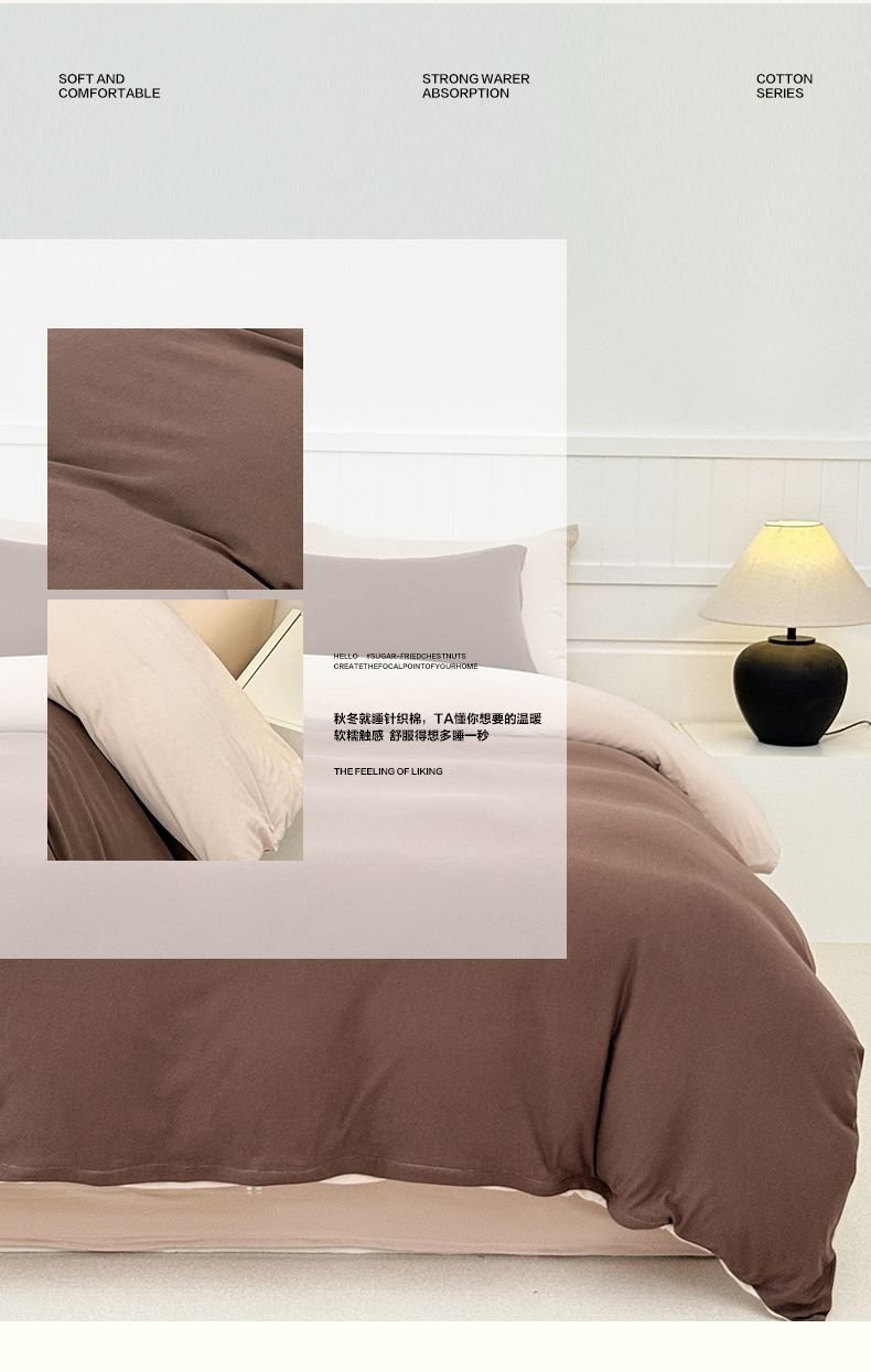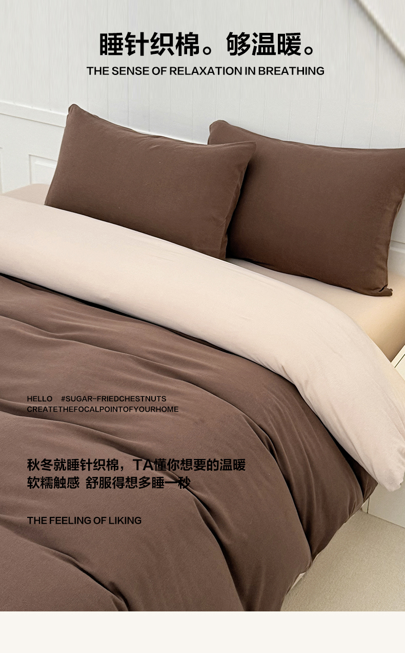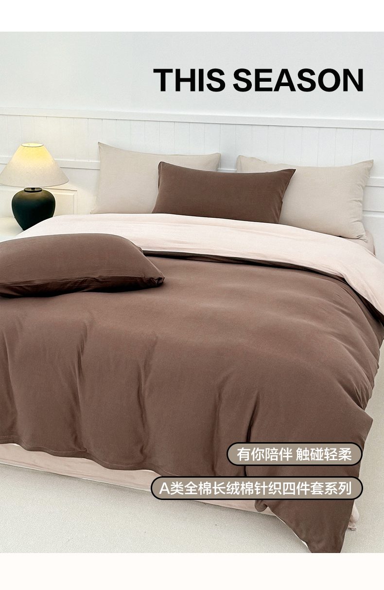 当前位置: 91家纺网 > 商品网购 > 床品套件 > 四件套 > 全棉普通四件套 > 锦罗绣 2026年全棉纯棉针织棉螺旋纱四件套 单被套定制任意尺寸 针织棉-深咖白