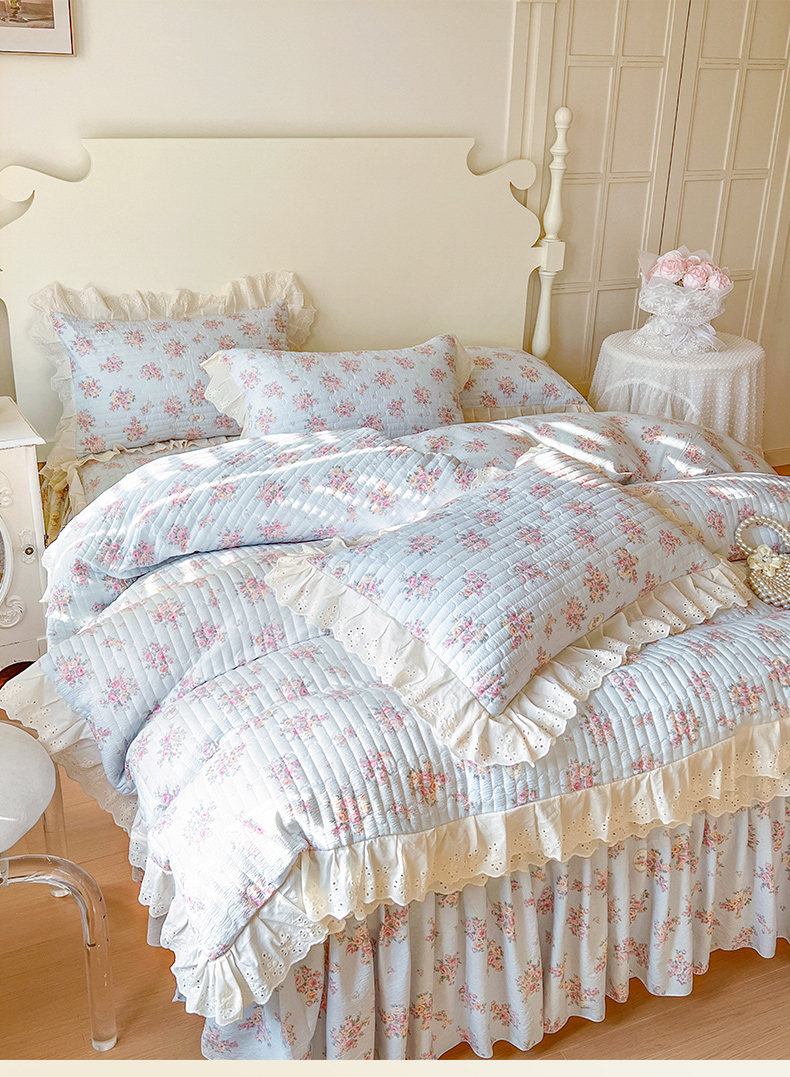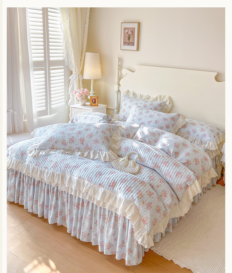(总)恋尚 2025新款韩式蕾丝丝光棉夹棉床裙四件套,蜜芙-浅蓝,蜜芙-米黄,蜜芙-蜜桃粉,蜜芙-浅白,蜜芙-水绿,蜜芙-香芋紫