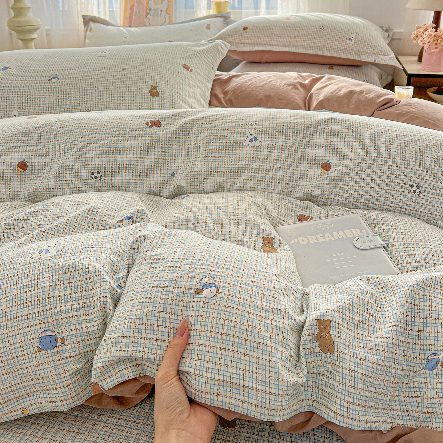 (总)梵克保罗 2025秋冬新款牛奶绒泡泡绒印花卡通花卉兔毛外贸跨境单枕套单被套小号三件套四件套,爱心泡泡-咖,爱心泡泡粉,粉色空间,蝴蝶-粉,蝴蝶灰,花仙子,灰色空间,梦幻星空,田园生活,熊猫点点-咖,熊猫点点-绿