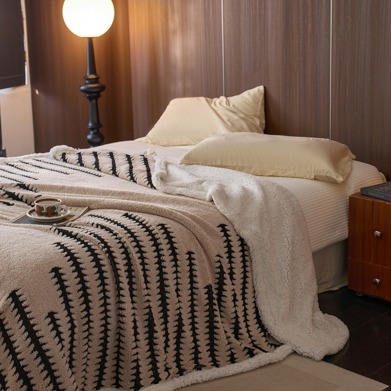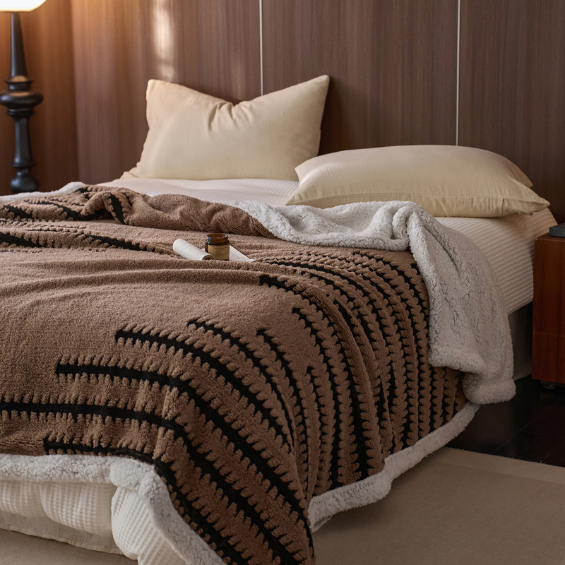 良品汇馆 2026新款秋冬加厚双层阳离子羊羔绒良品办公室午休毛毯沙发绒毯子 云杉-摩卡