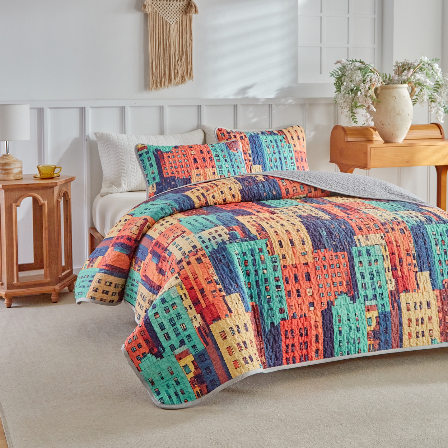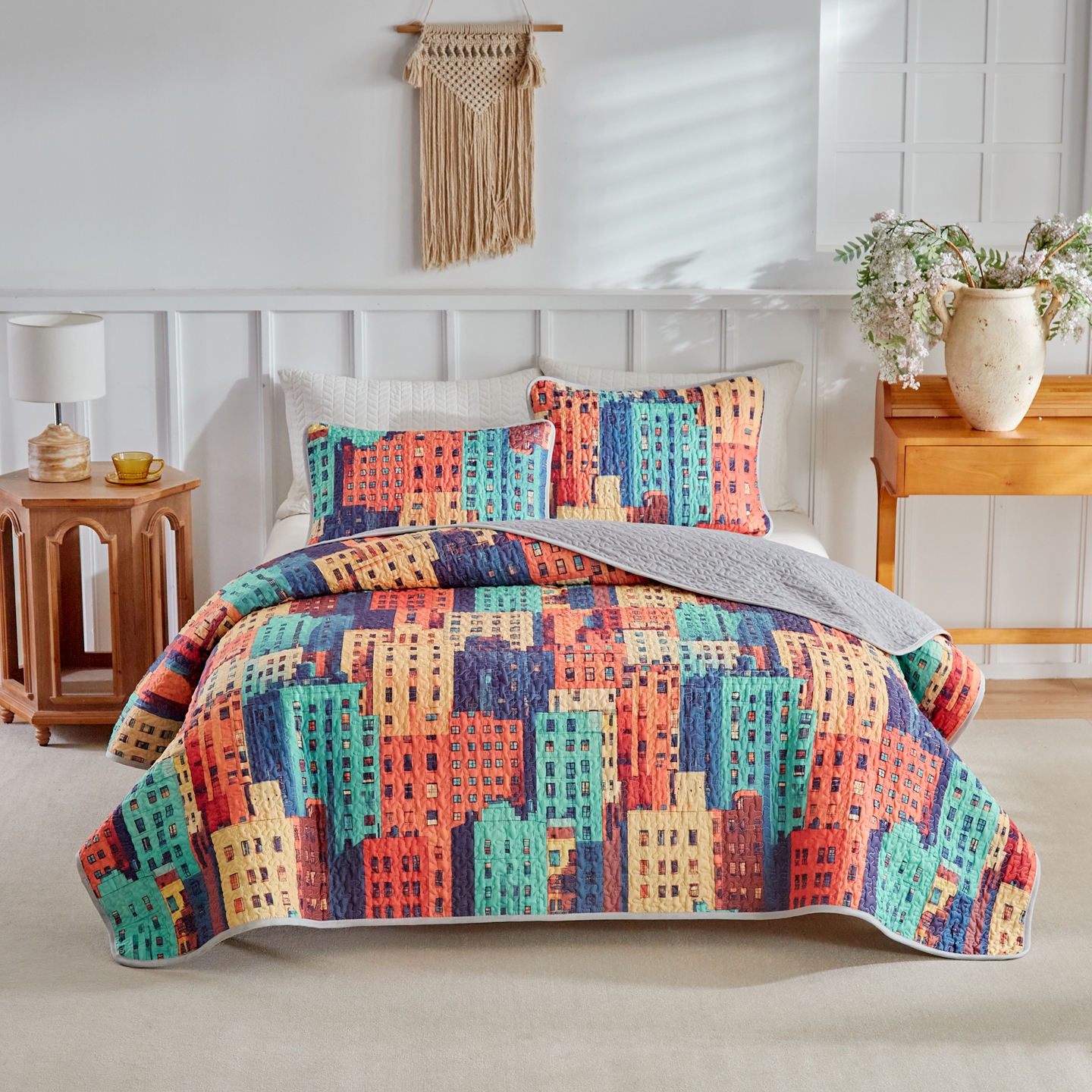(总)温宁家纺 2025新款长方格床盖三件套 国外薄被,长方格-灰色,长方格-绿色,长方格-米色