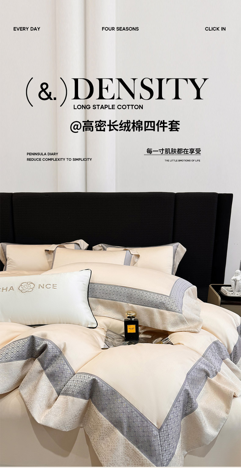 2026新款高端轻奢风A类贡缎长绒棉四件套纯棉重工刺绣被套床单高级感床笠床上用品 格拉芙-柔杏