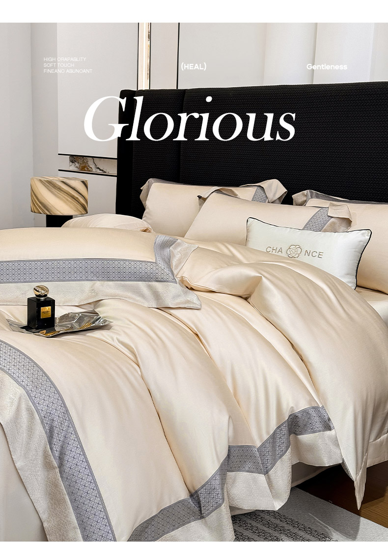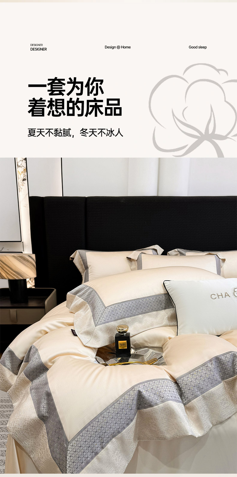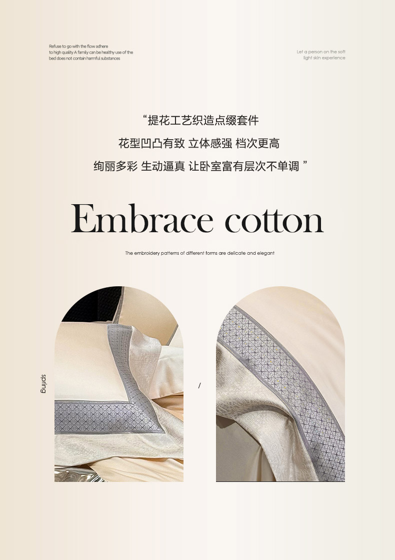 商品名称: 2026新款高端轻奢风A类贡缎长绒棉四件套纯棉重工刺绣被套床单高级感床笠床上用品 格拉芙-柔杏