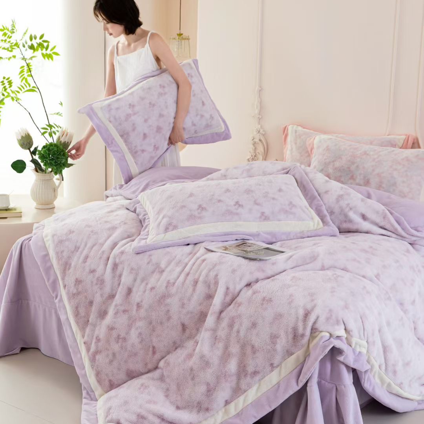 玖琳家纺 2026新款高端高克重水貂绒四件套 浅浅 紫色