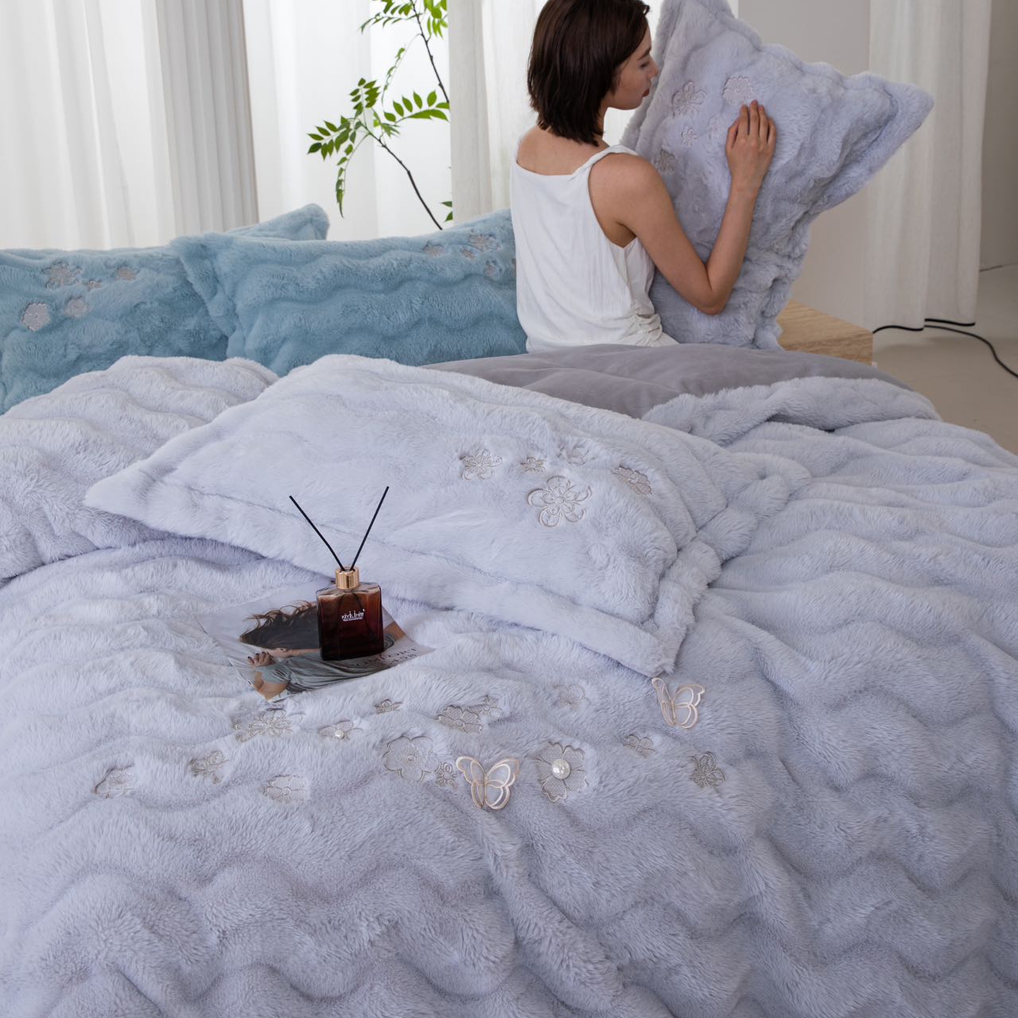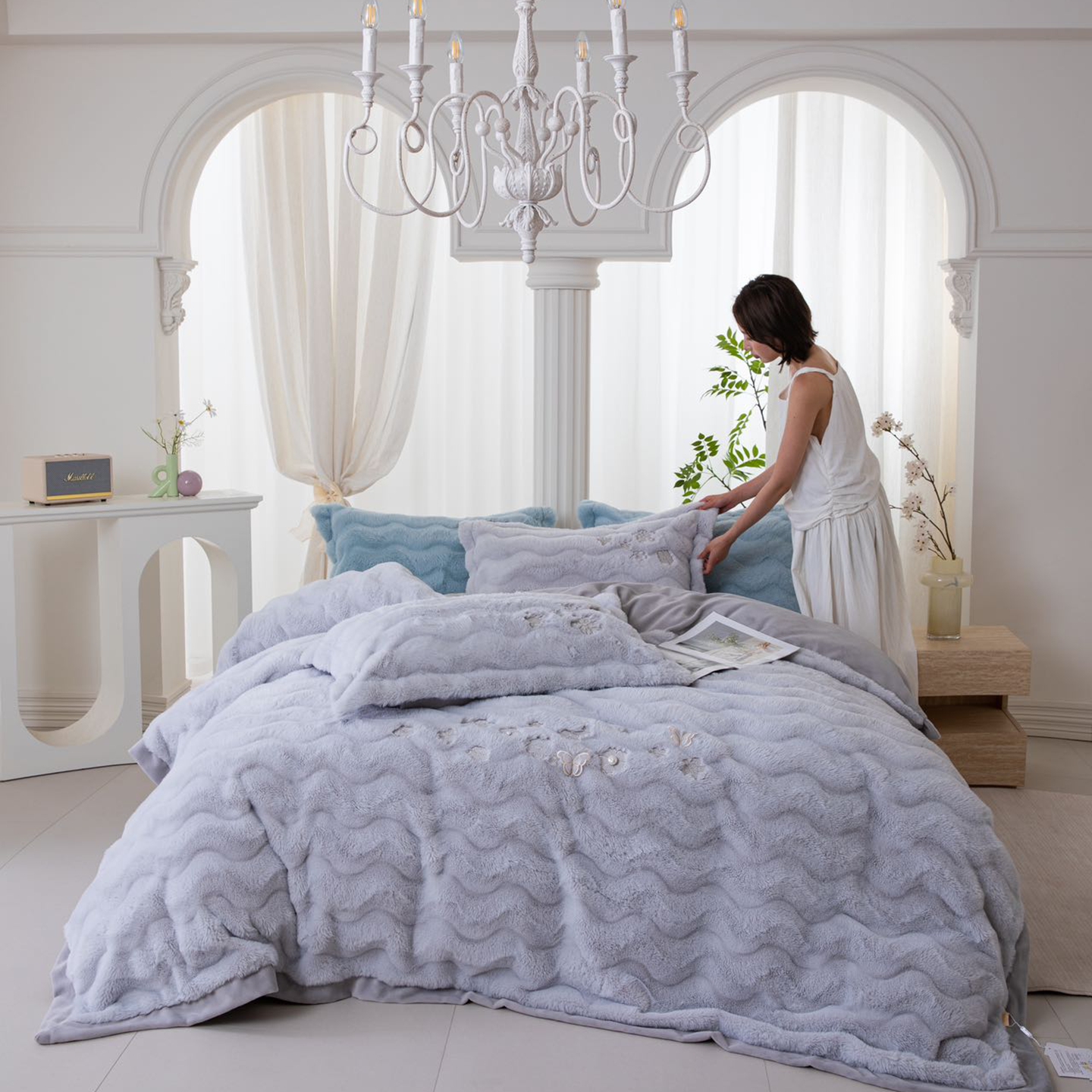 玖琳家纺 2026新款高端高克重水貂绒四件套-倾颜系列 倾颜 灰色