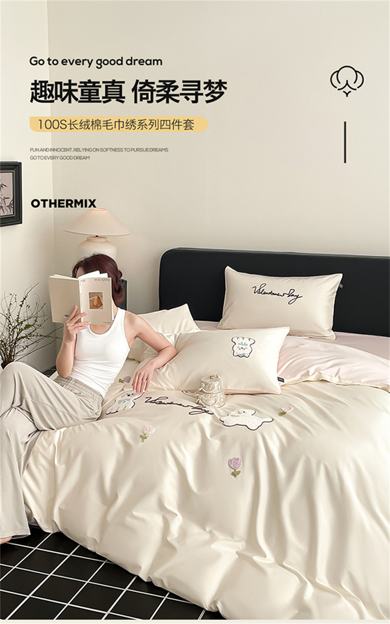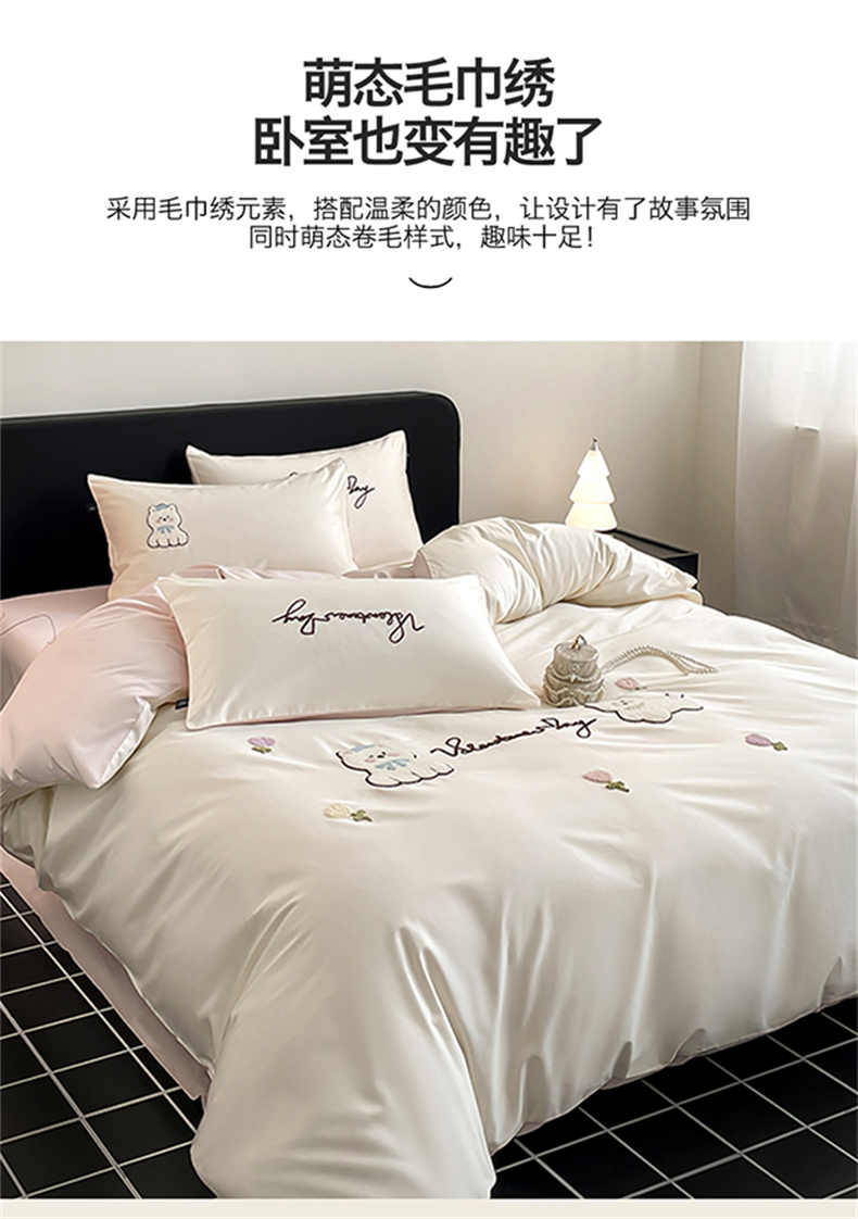 (总)蓝米卡夫 2026春季新款-100S长绒棉毛巾绣系列四件套-蛋糕兔兔(礼盒),蛋糕兔兔-芝士粉芋,蛋糕兔兔-美丽梦幻紫,蛋糕兔兔-桃粉幻紫