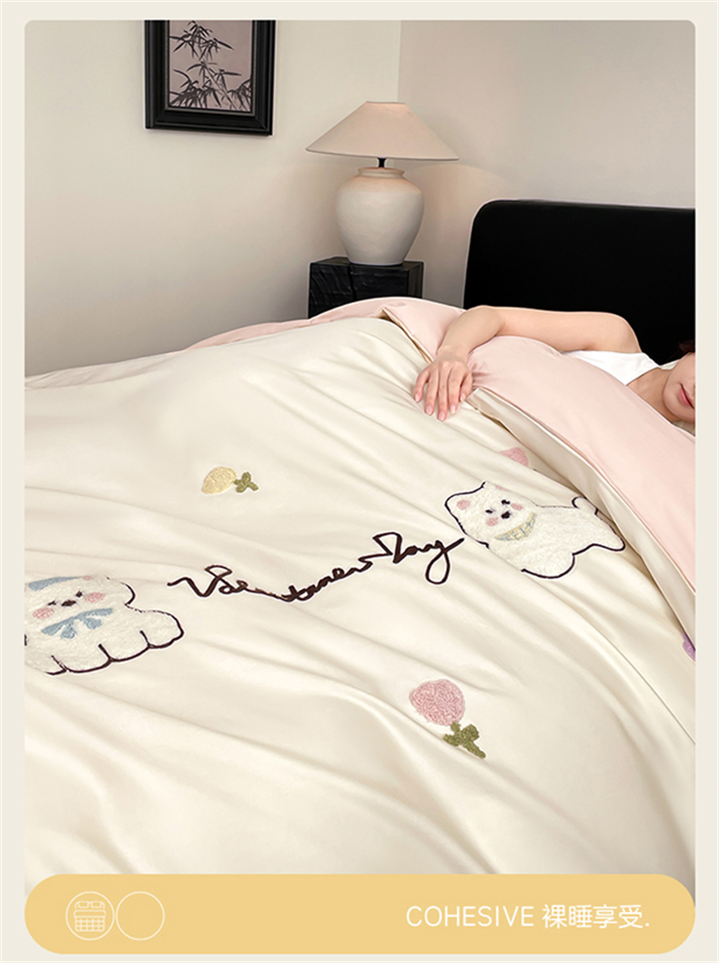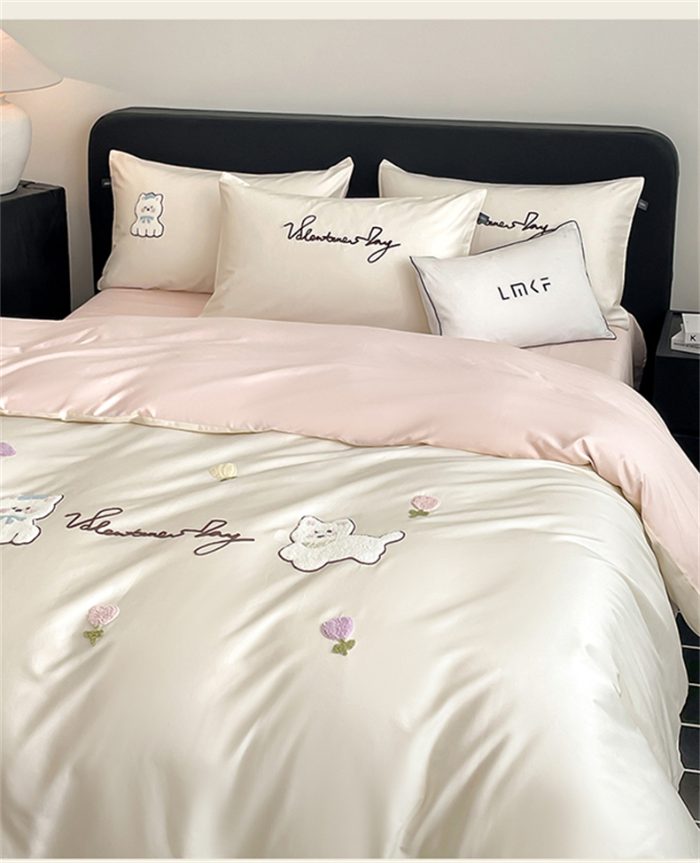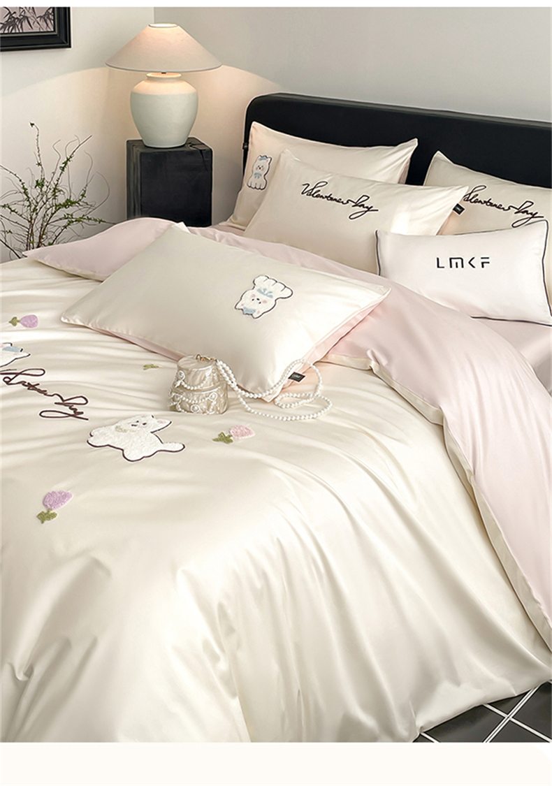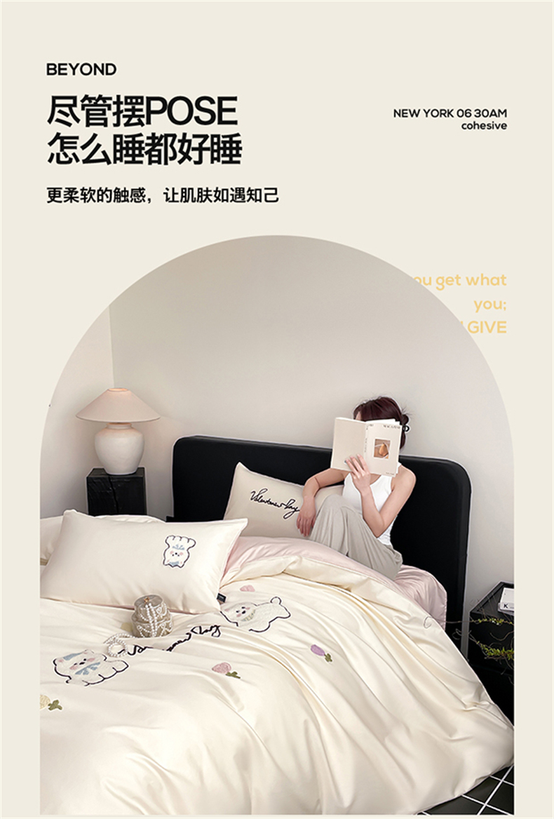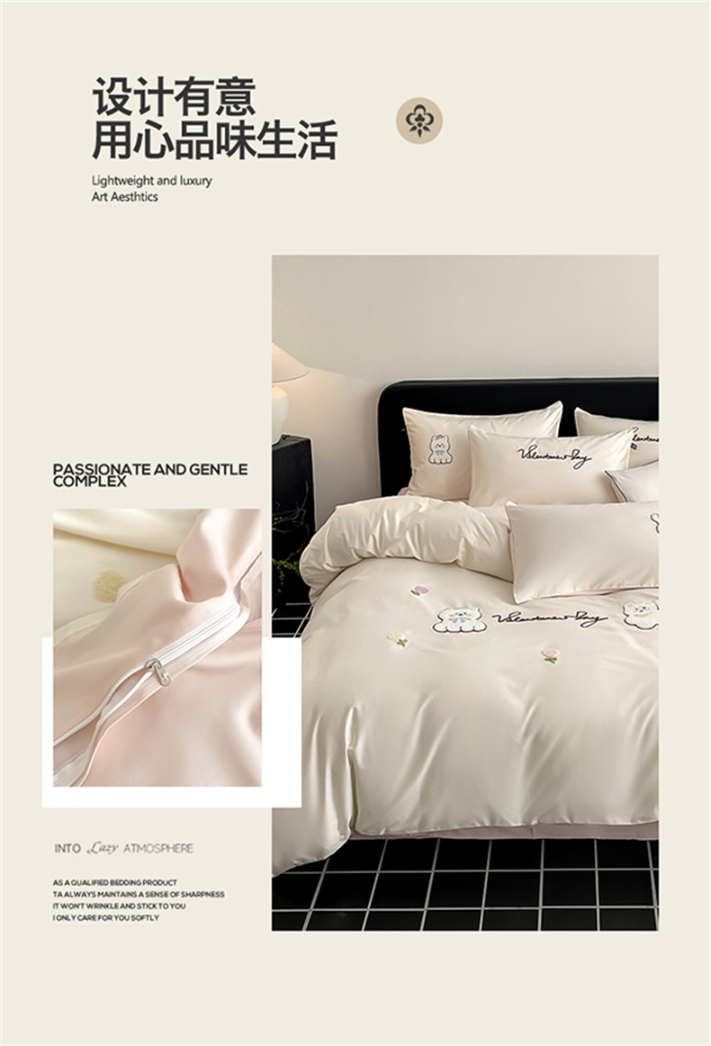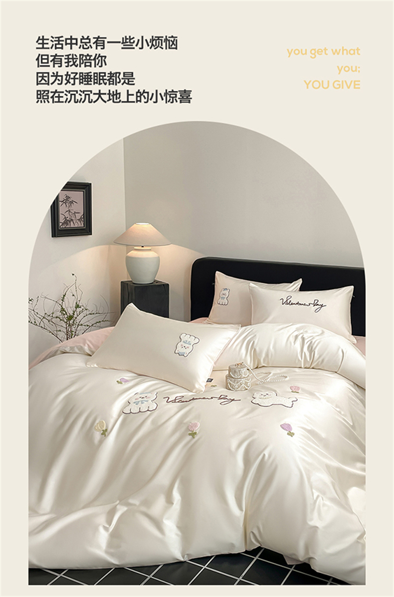 (总)蓝米卡夫 2026春季新款-60S长绒棉贡缎刺绣系列四件套-放轻松(礼盒),放轻松-奶昔白+竹青,放轻松-天空蓝+初黄,放轻松-优雅粉+奶油粉