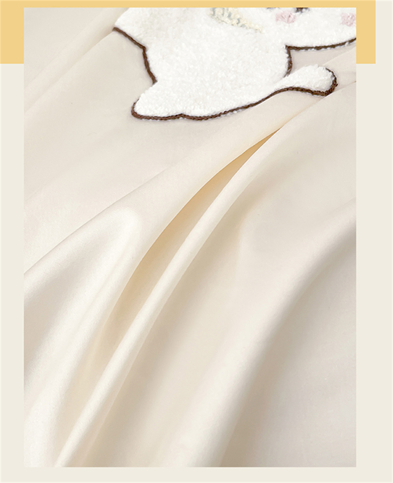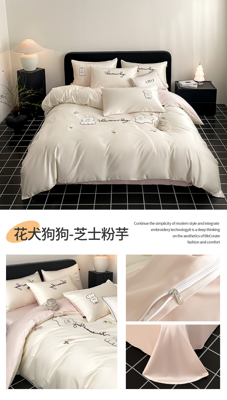 商品名称:蓝米卡夫 2026春季新款-100S长绒棉毛巾绣系列四件套-花犬狗狗(礼盒) 花犬狗狗-芝士粉芋