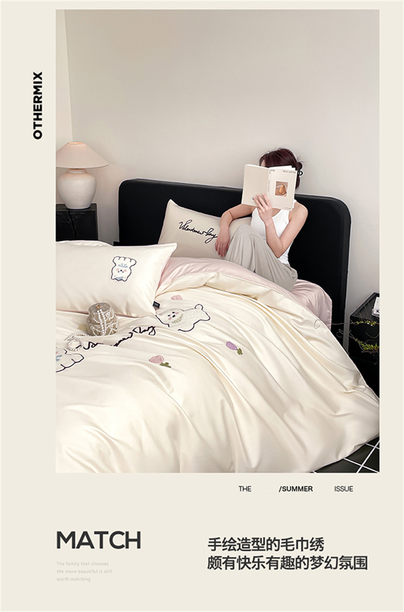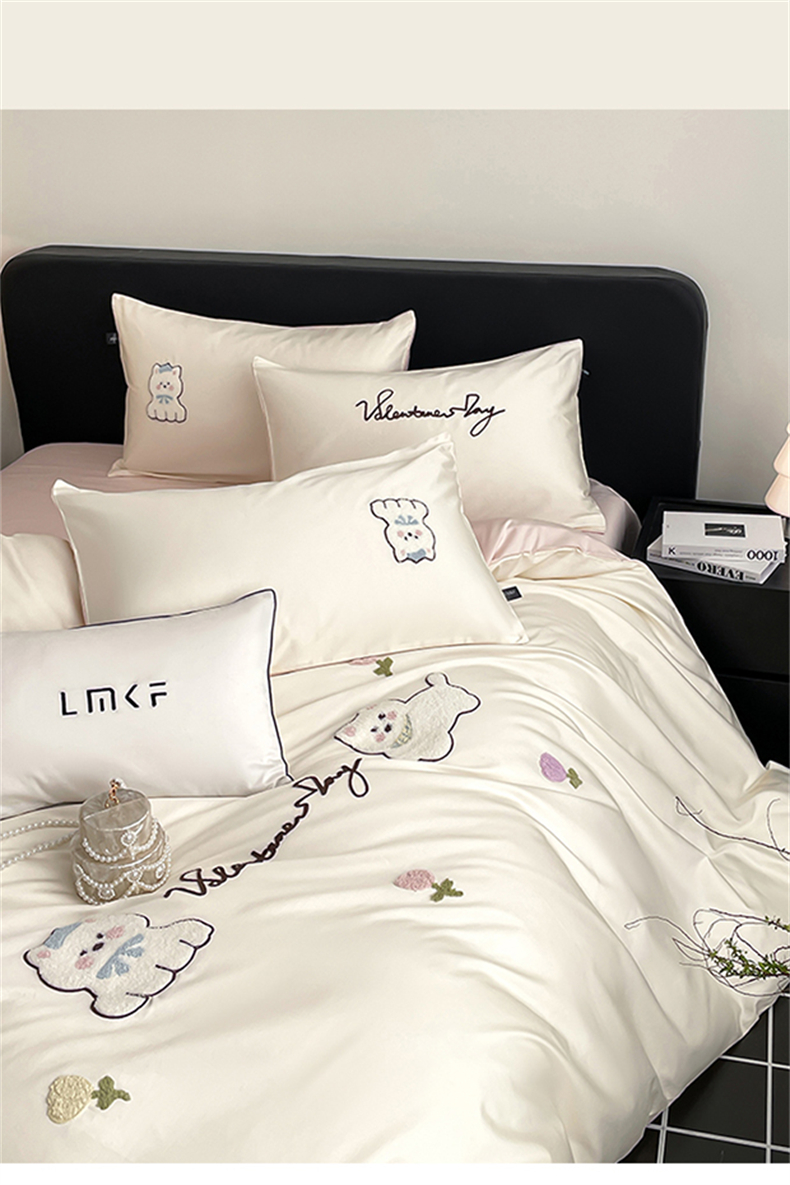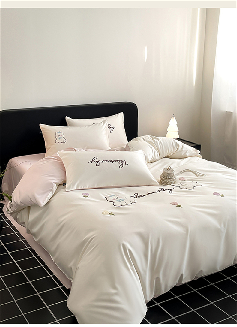 (总)蓝米卡夫 2026春季新款-60S长绒棉贡缎刺绣系列四件套-郁见小兔(礼盒),郁见小兔-奶昔白+天空蓝,郁见小兔-优雅粉+奶油粉,郁见小兔-竹青+初黄