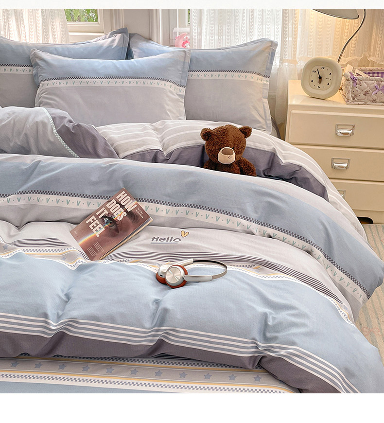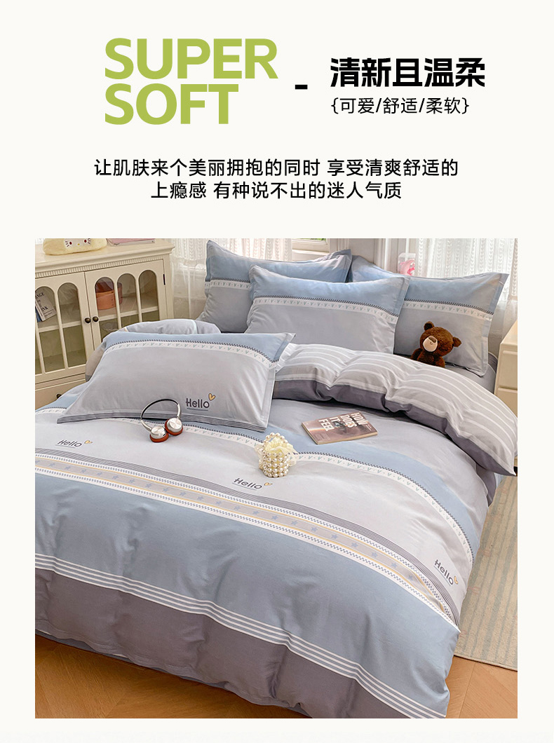 (总)世爵 2026新款10A抗菌亲肤水洗棉双拼四件套,卡其蓝,绿浅灰,墨松灰,暖驼,浅灰,深灰,深灰绿,深蓝灰,天空蓝浅灰,远山绿,远天蓝