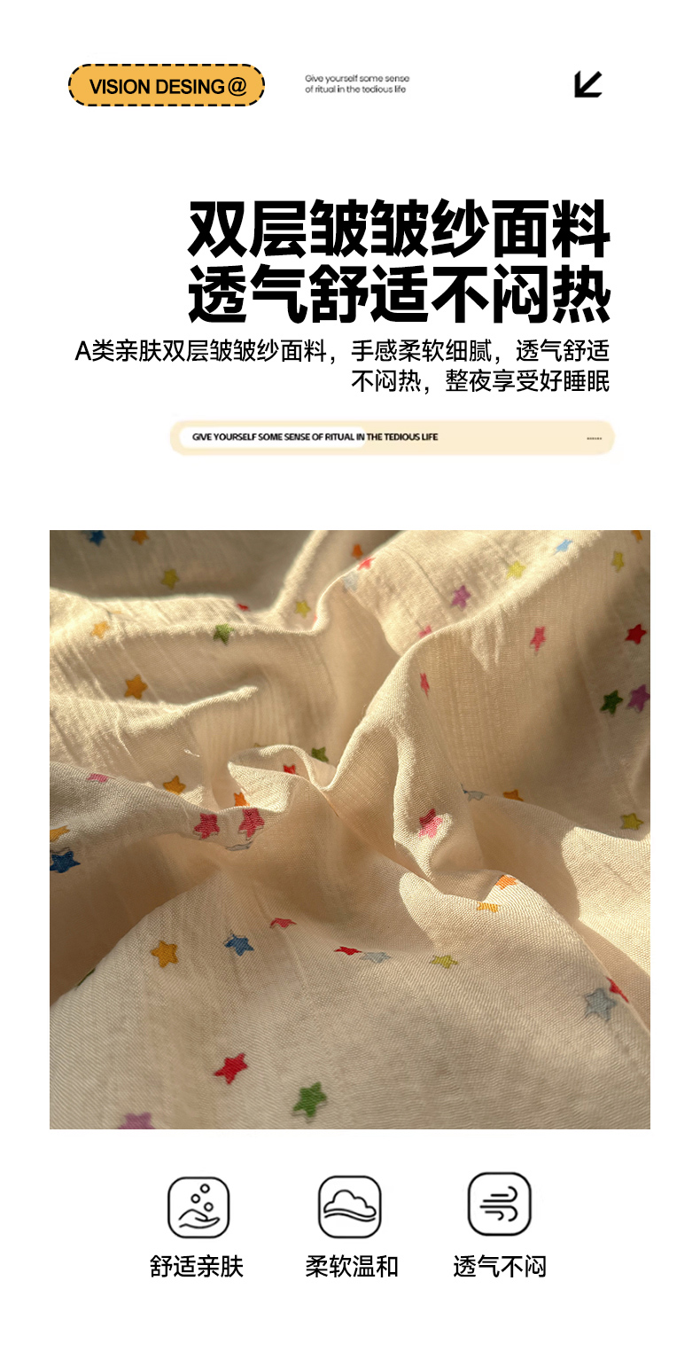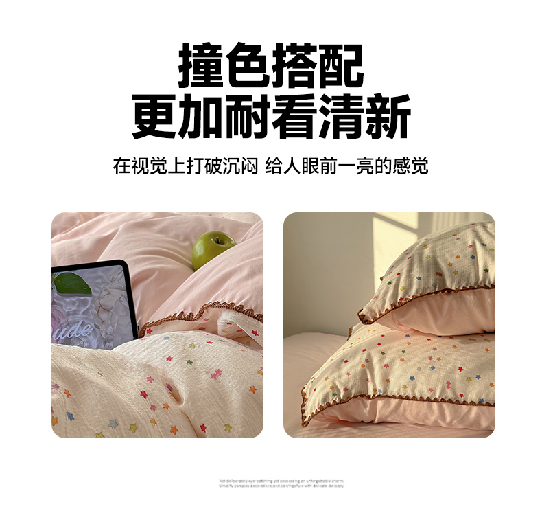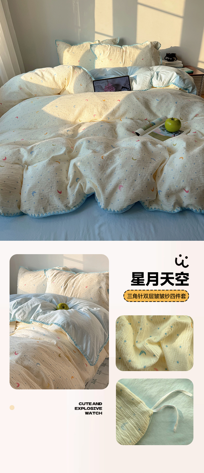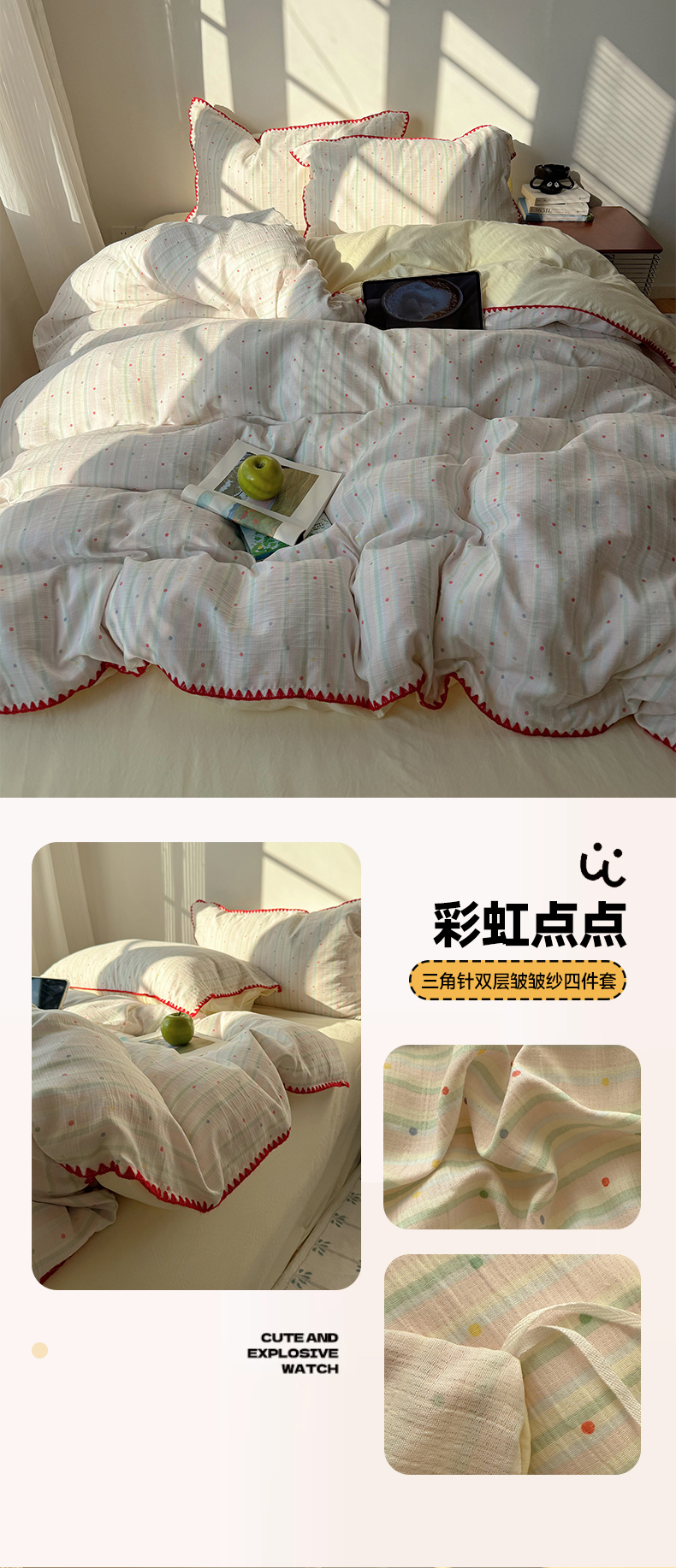 当前位置: 91家纺网 > 商品网购 > 床品套件 > 四件套 > 其它四件套 > (总)轻奢坊 2026新款三角针双层纱皱皱纱韩系清新风四件套