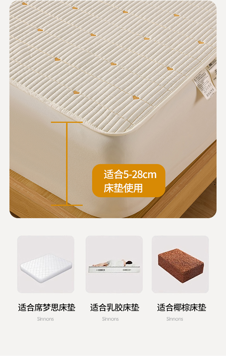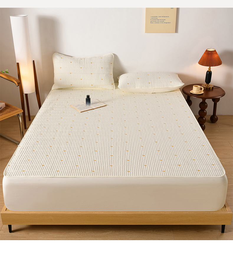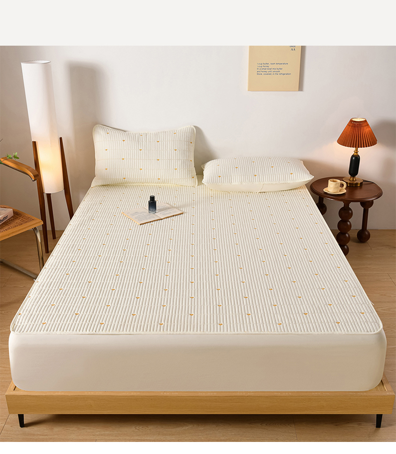 优品惠 2026新款A类刺绣大豆夹棉床笠 爱心米