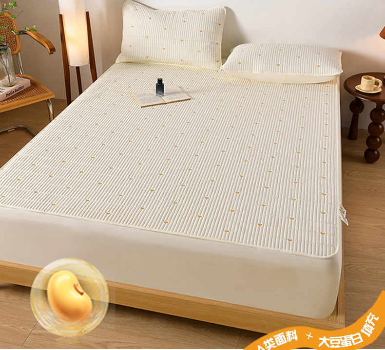• 91家纺网 家纺一手货源 找家纺 优品惠 2026新款A类刺绣大豆夹棉床笠 爱心米