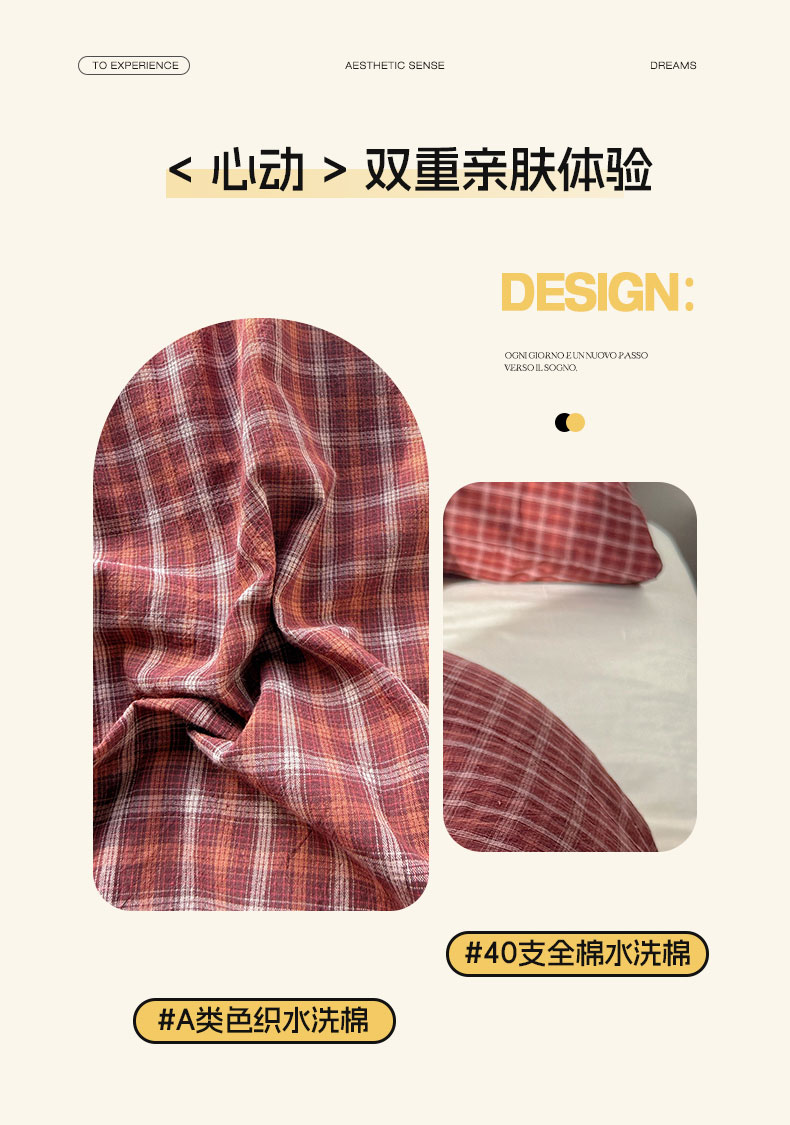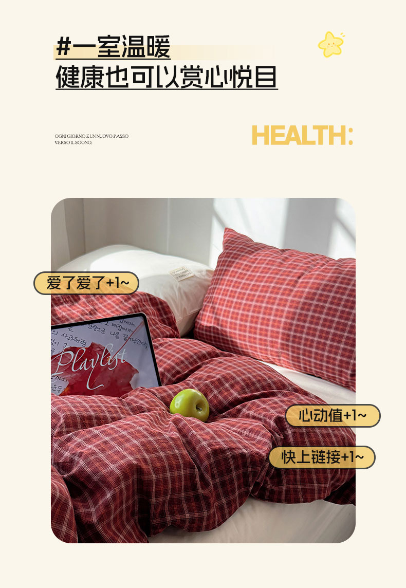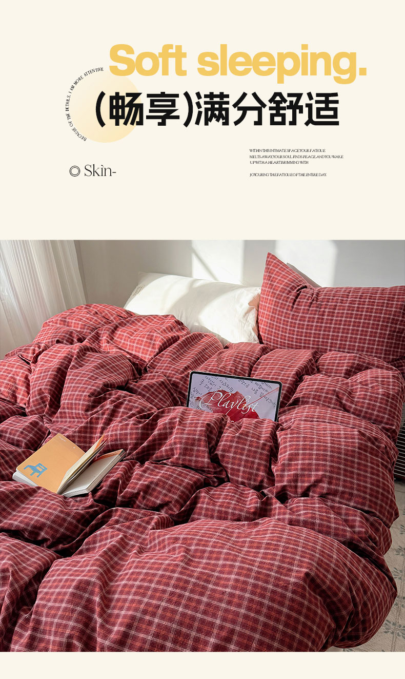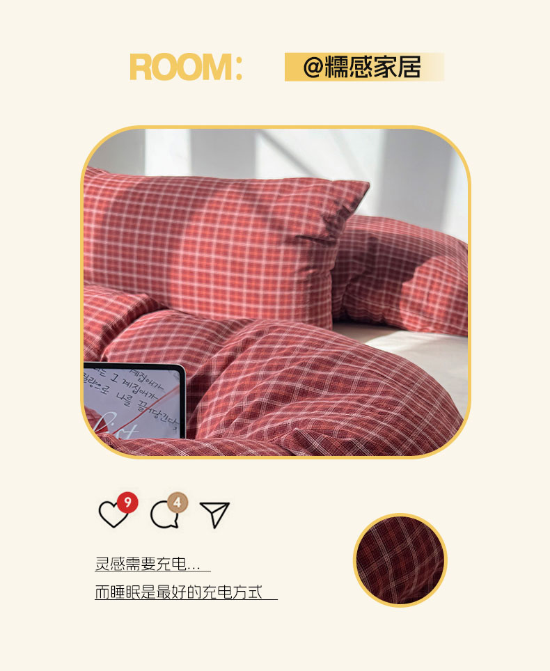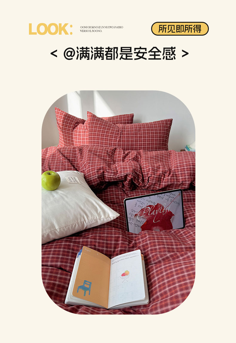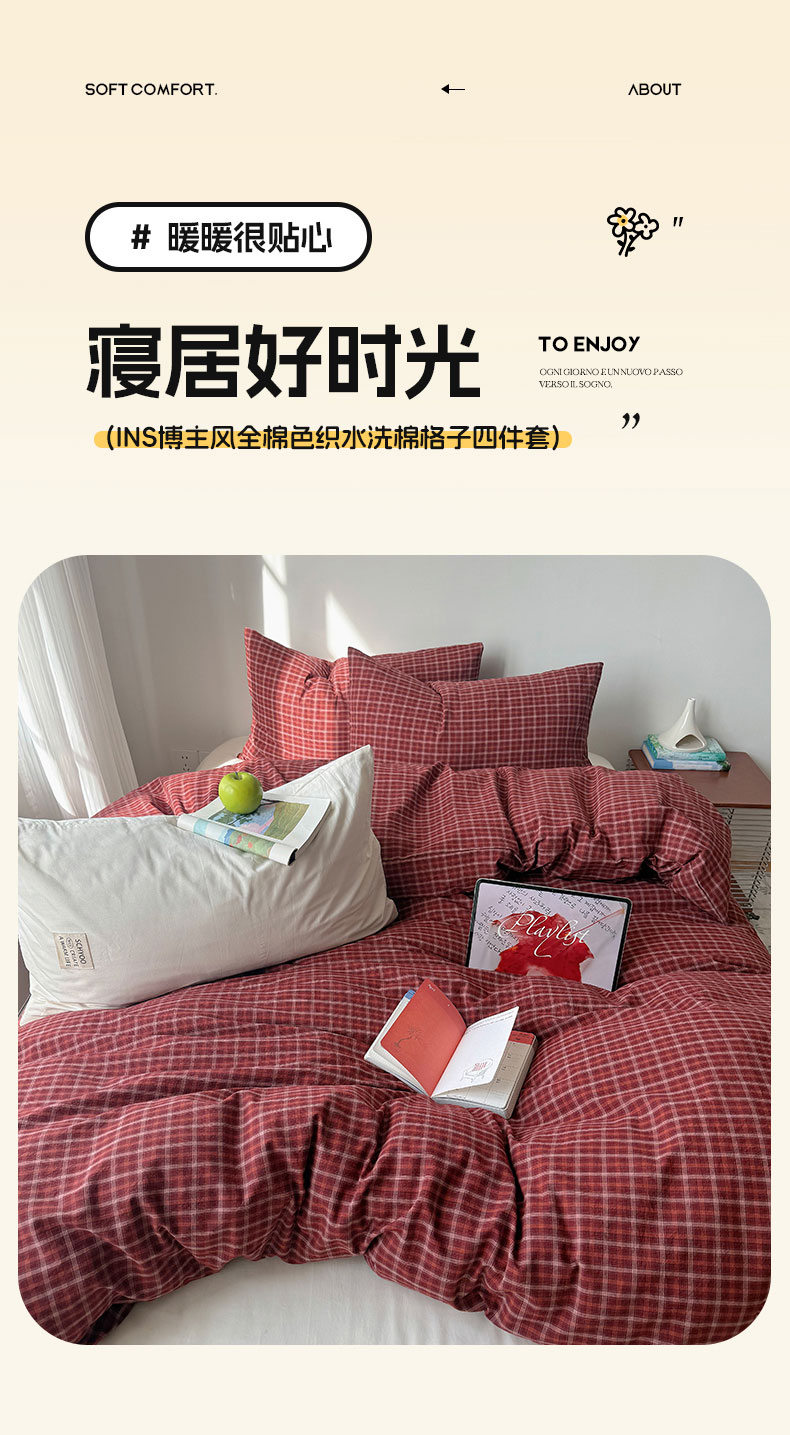 当前位置: 91家纺网 > 商品网购 > 床品套件 > 四件套 > 全棉普通四件套 > 六巷胡同 2026新款INS博主风A类全棉纯棉色织水洗棉格子四件套 追光-红格