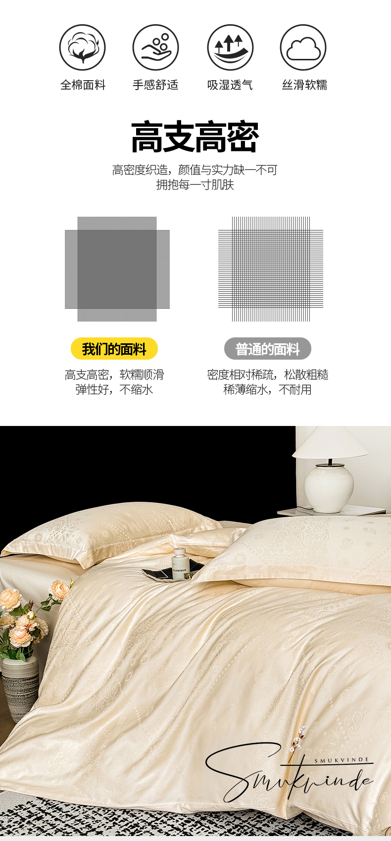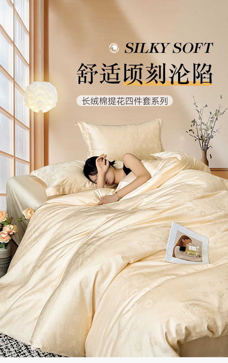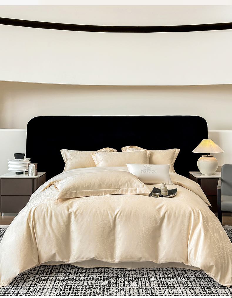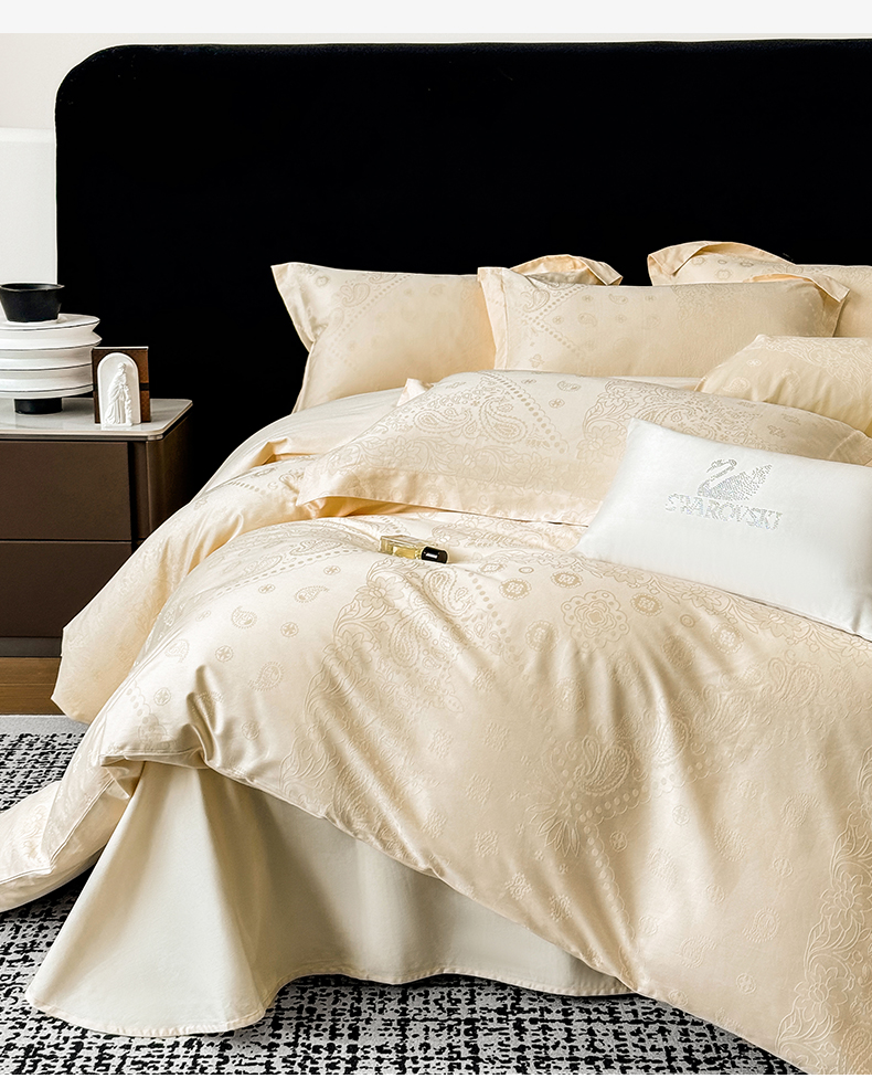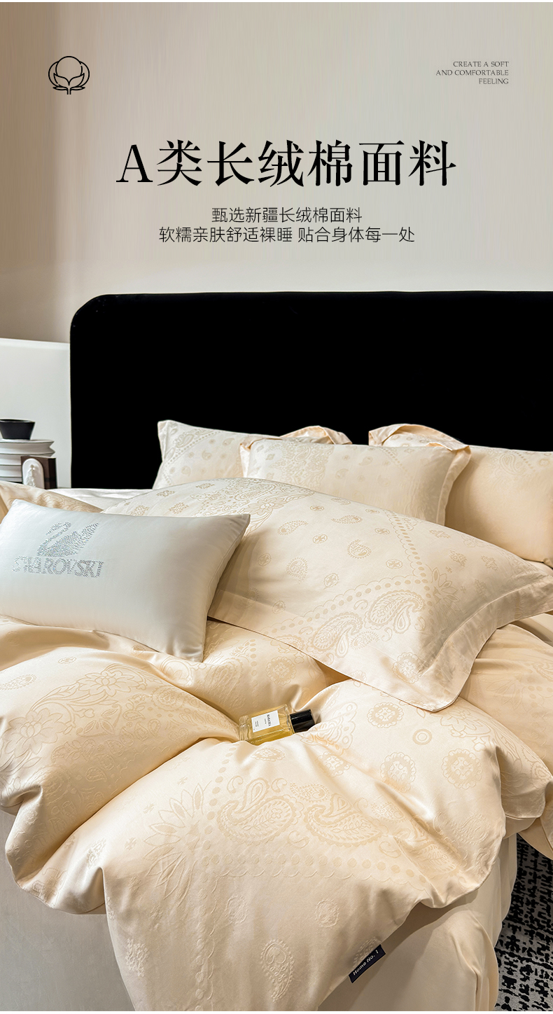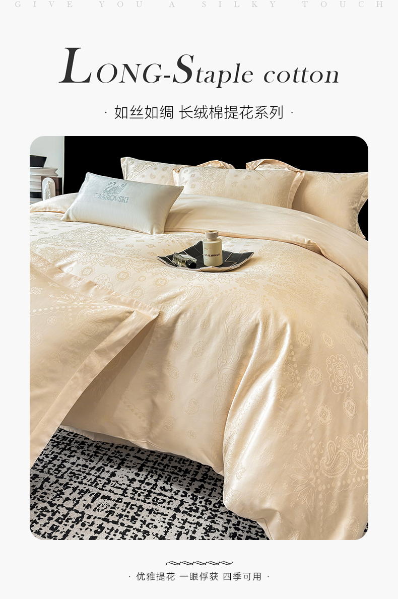 当前位置: 91家纺网 > 商品网购 > 床品套件 > 四件套 > 长绒棉四件套 > 家居1号家纺 2026春夏新款50双股长绒棉全棉纯棉提花四件套-费罗德【控价券后价格不得低于:标准269元,加大289元!会员优惠10元!】 费罗德-香槟金