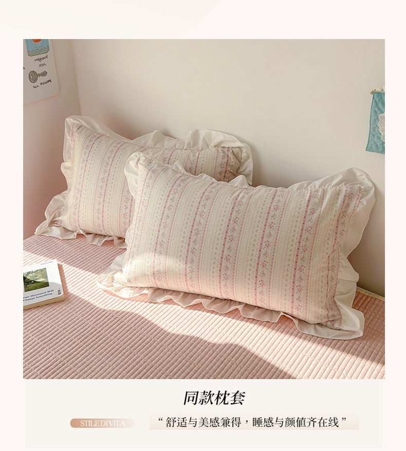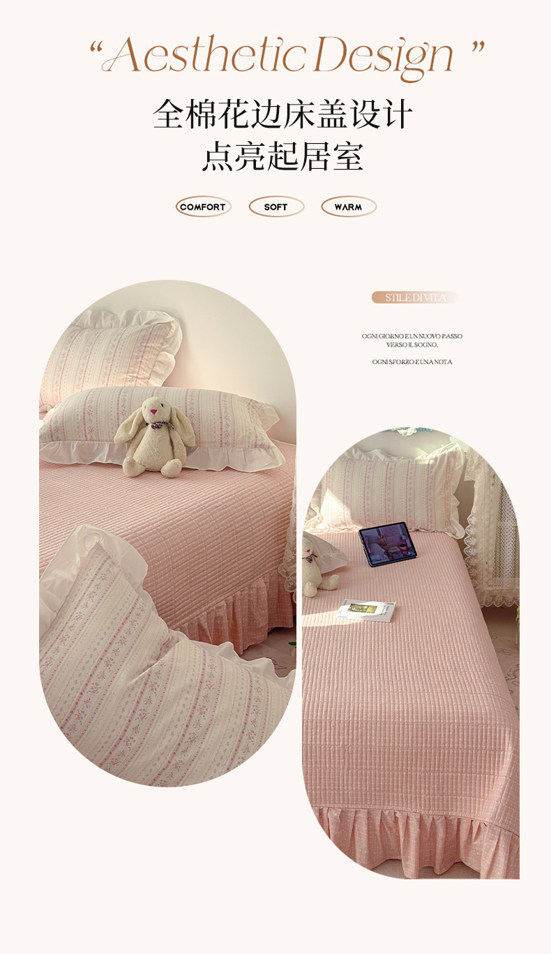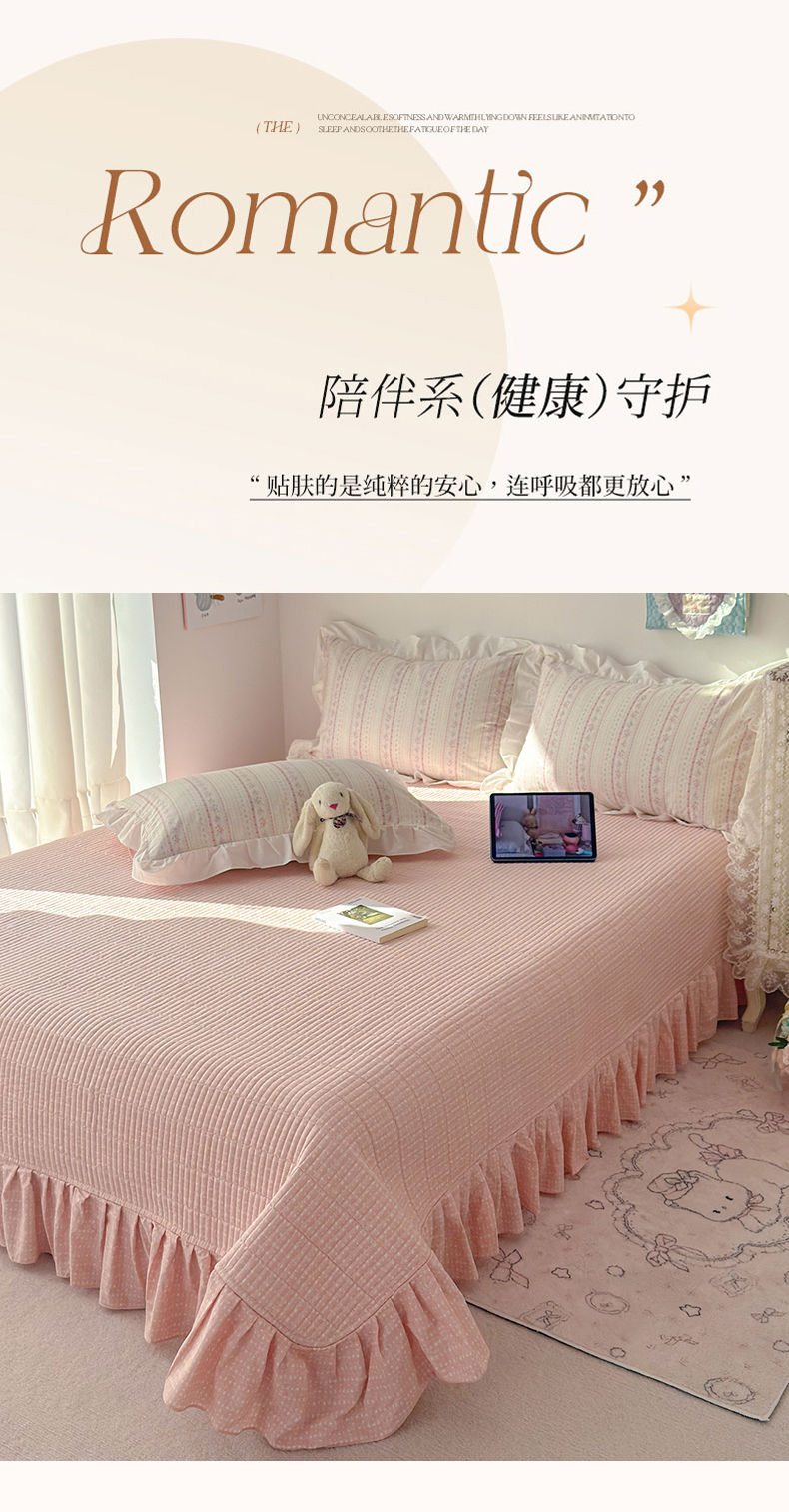 当前位置: 91家纺网 > 商品网购 > 床品套件 > 四件套 > 全棉普通四件套 > 简宜家居(朝初家纺) 2026新款全棉绗缝花边床盖四件套 素条花-粉