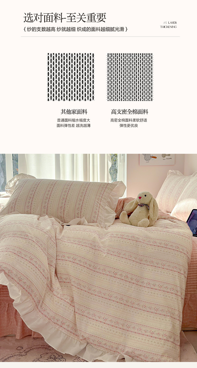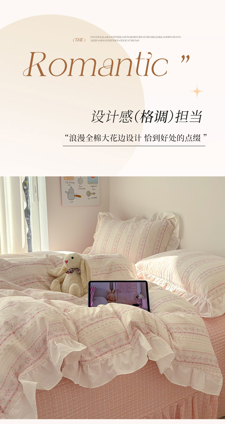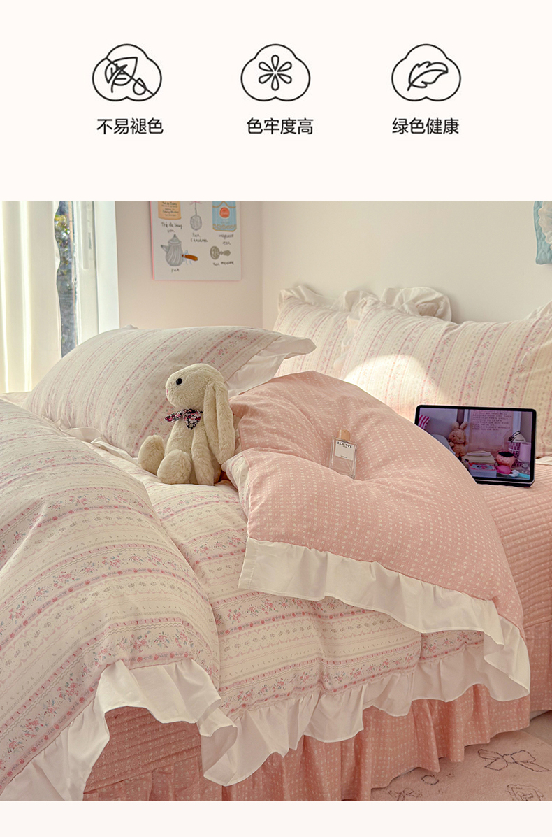 当前位置: 91家纺网 > 商品网购 > 床品套件 > 四件套 > 全棉普通四件套 > 简宜家居(朝初家纺) 2026新款全棉绗缝花边床盖四件套 素条花-粉