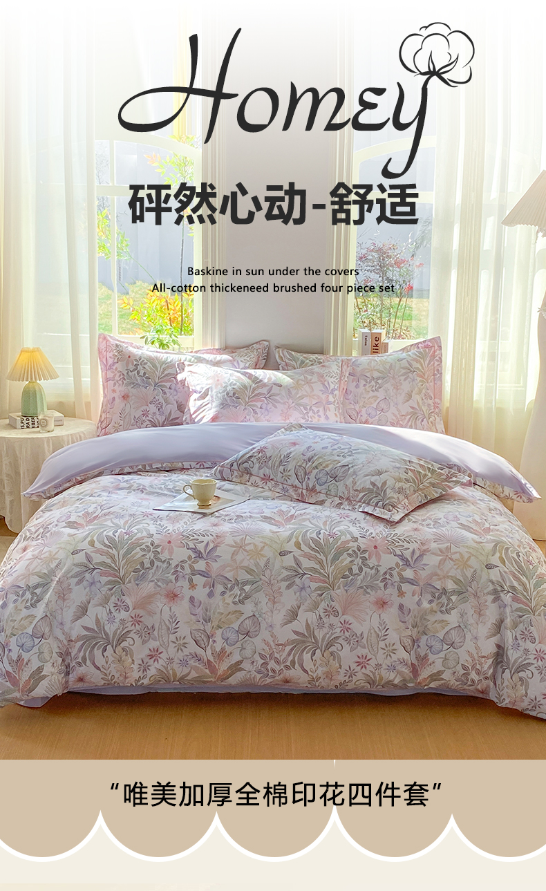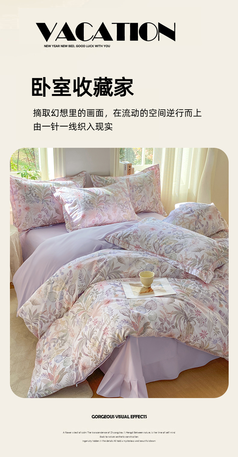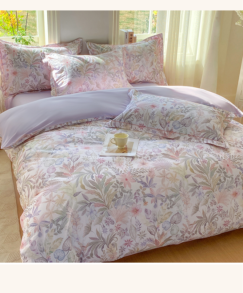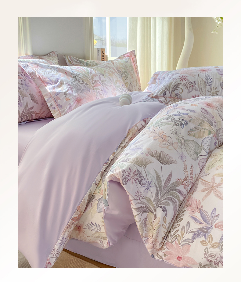 当前位置: 91家纺网 > 商品网购 > 床品套件 > 四件套 > 全棉普通四件套 > XIWEN-希文家纺 2026新款40支全棉13376数码印花四件套-第二批 晚柠-紫