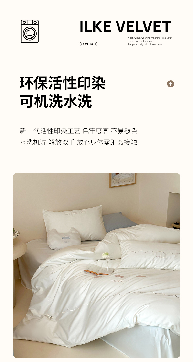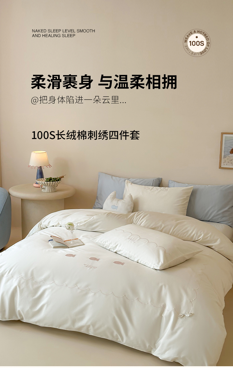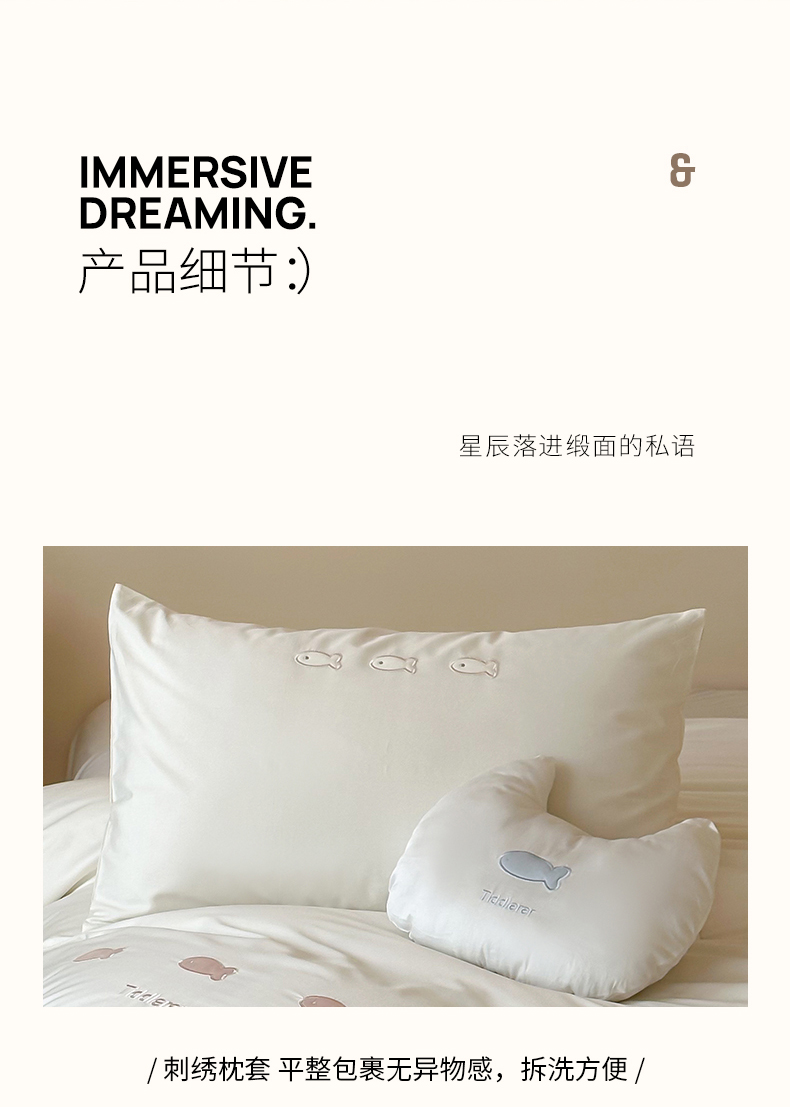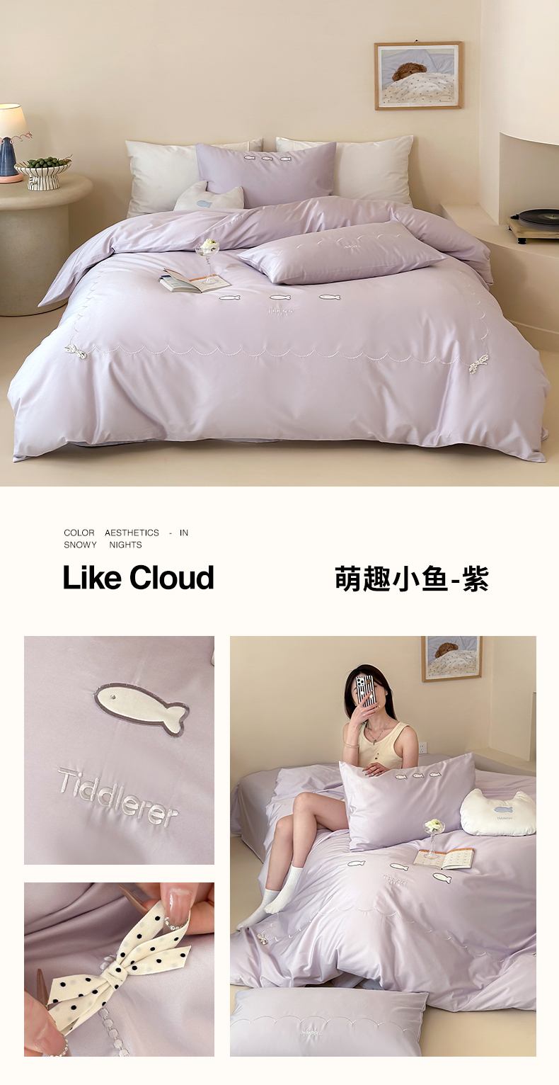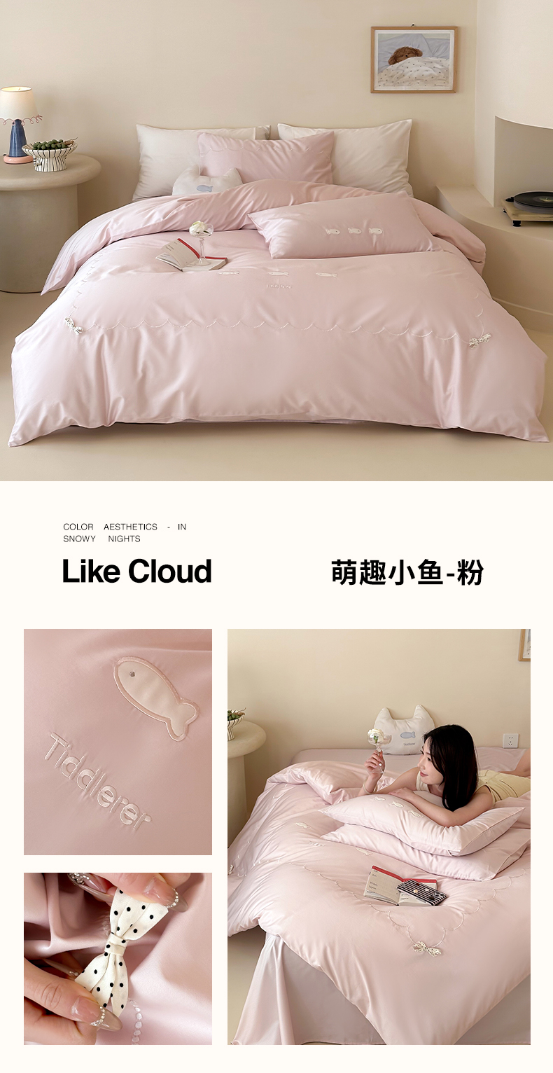 当前位置: 91家纺网 > 商品网购 > 床品套件 > 四件套 > 长绒棉四件套 > (总)极简 2026新款100S长绒棉刺绣四件套-萌趣小鱼(小号控价258标准288加大308)