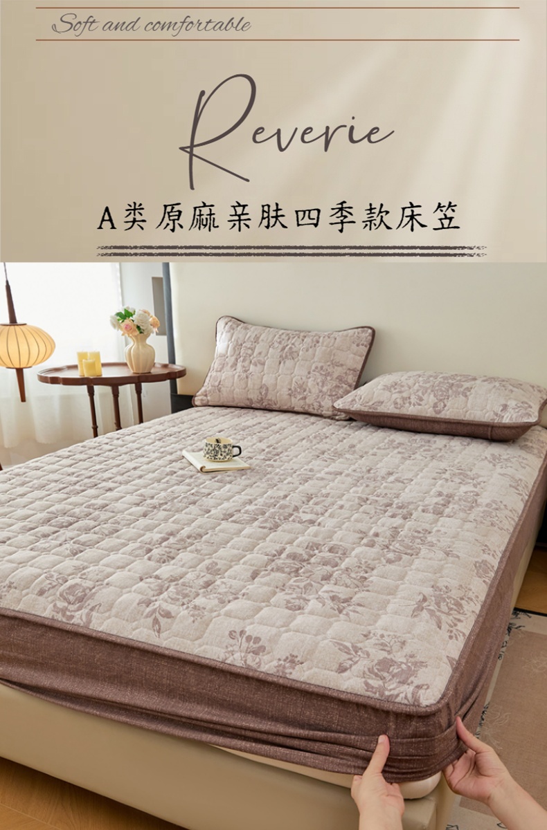 商品名称:(总)圣比熊 2026新款原麻夹棉床笠机洗家用防滑透气四季款加厚床罩床垫床单保护套三件套-新款