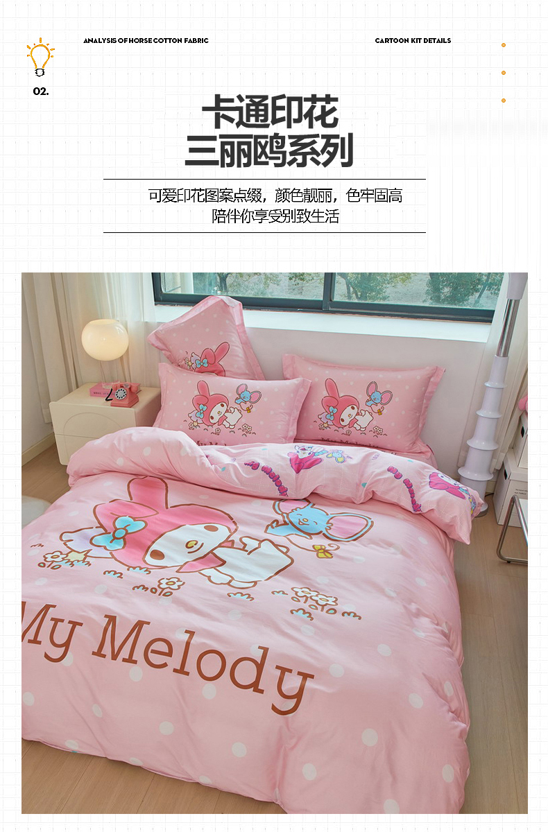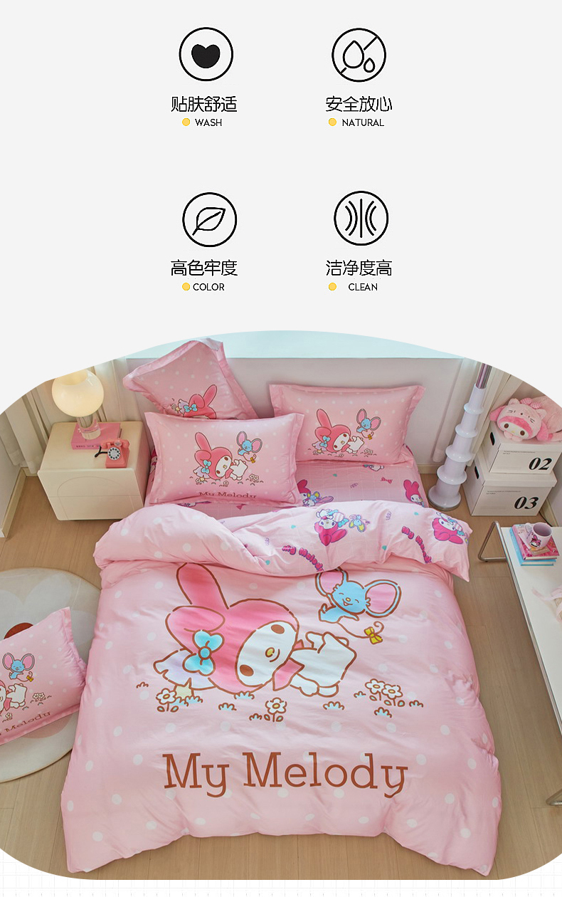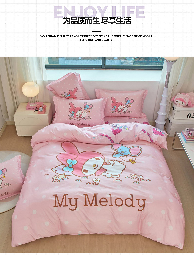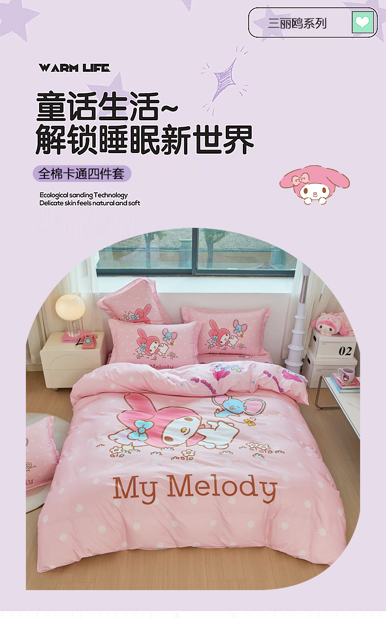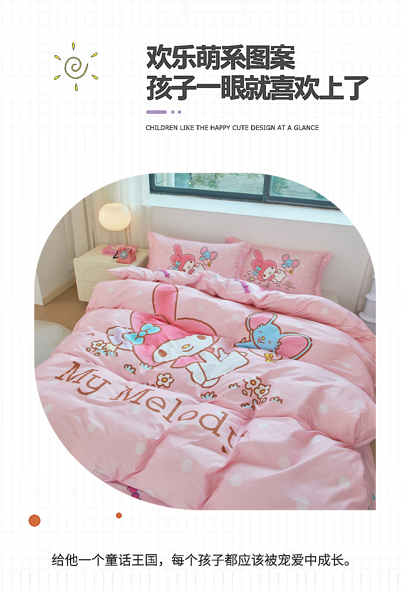 当前位置: 91家纺网 > 商品网购 > 床品套件 > 四件套 > 全棉普通四件套 > 蘭菲家纺 2026新款全棉三丽欧印花卡通四件套 轻松美乐蒂
