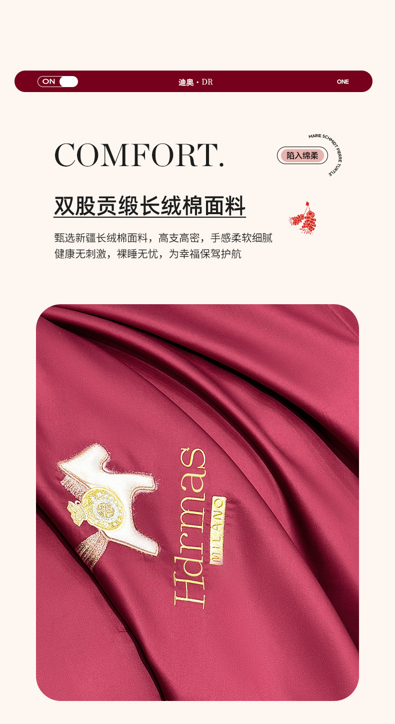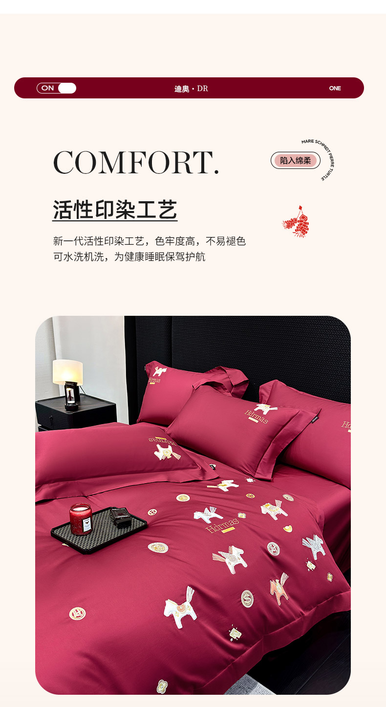 商品名称: 2026新款【迪奥】马年50S双股A类长绒棉纯棉四件套100全棉新年刺绣被套床单 马上有钱-红