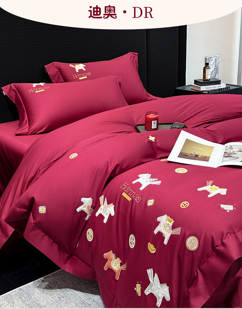 2026新款【迪奥】马年50S双股A类长绒棉纯棉四件套100全棉新年刺绣被套床单 马上有钱-红