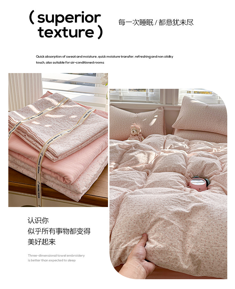 商品名称:多品家纺 2026新款奶呼呼超柔云感双层纱系列单被套 粉粉小花