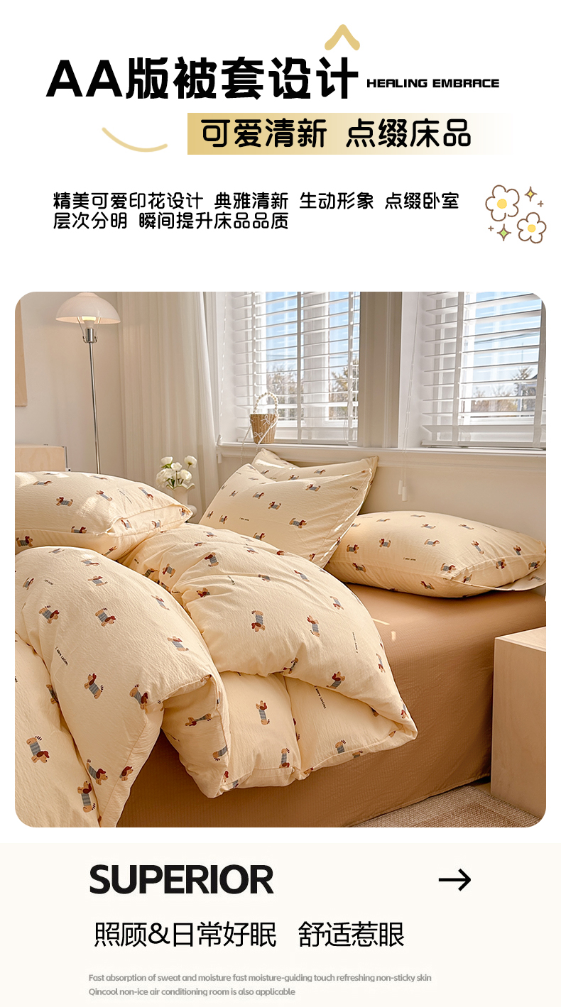 (总)多品家纺 2026新款奶呼呼超柔云感双层纱系列四件套,白露紫,半岛兰格,半岛紫格,豹纹猫咪,粉粉小花,福气满满,花田小狗,欢乐时光,开心狗,棉花兔兔,浅浅春意,桃气兔兔,淘气园,汪星人,小橘狗,熊多多,熊熊空间,学院派,樱桃蓝,樱桃紫