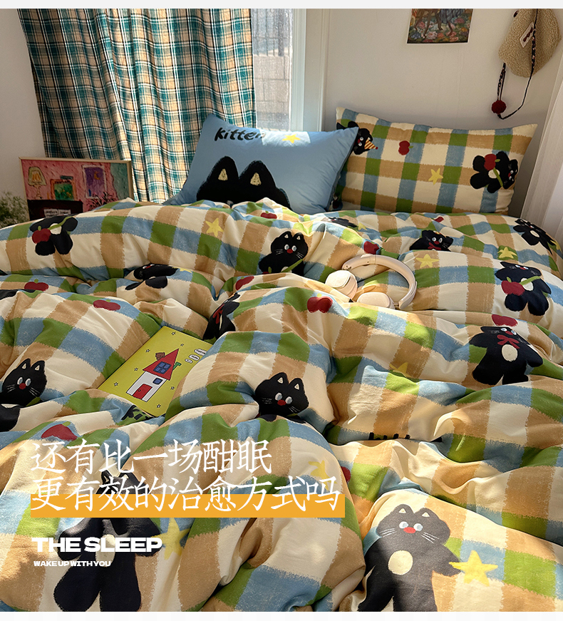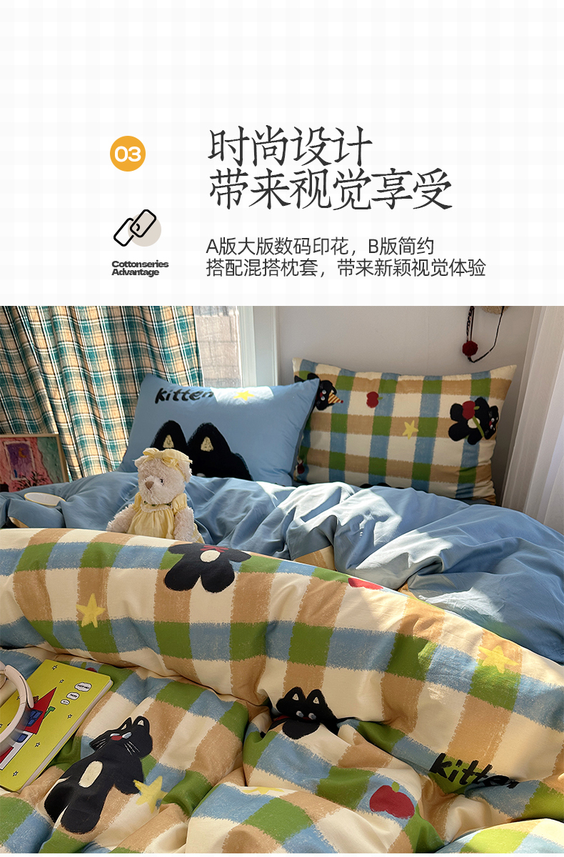 (总)桃子家居 2026新款纯棉混搭大版数码印花枕套小清新猫咪可爱系列四件套,棉混搭-彩虹马卡龙,棉混搭-红格幸运星,棉混搭-可可布丁猫,棉混搭-梦幻森林马,棉混搭-奶糖可可猫,棉混搭-苹果哈曼猫,棉混搭-甜美童话狗,棉混搭-甜心软糖猫