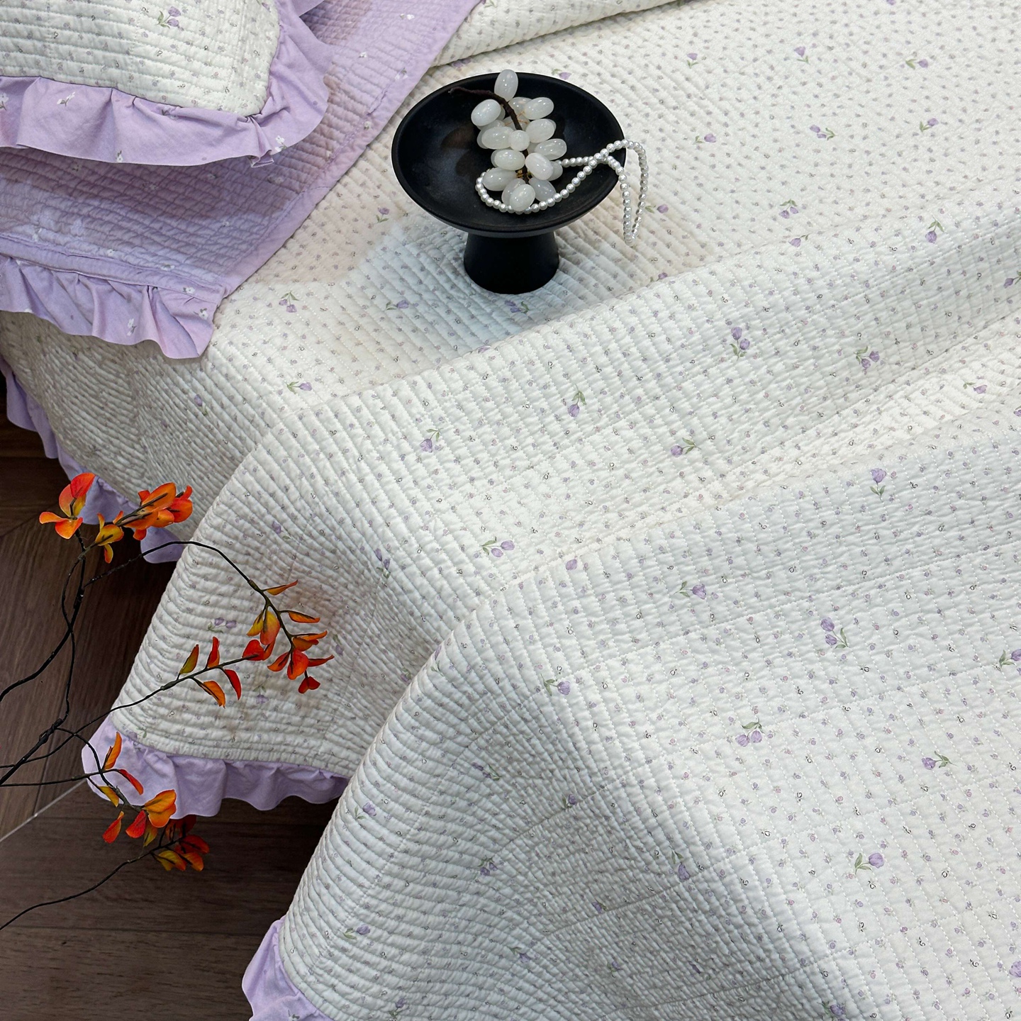 床盖工厂店 2026新款小花边双面全棉填充棉花床盖三件套 纽约樱桃(咖)