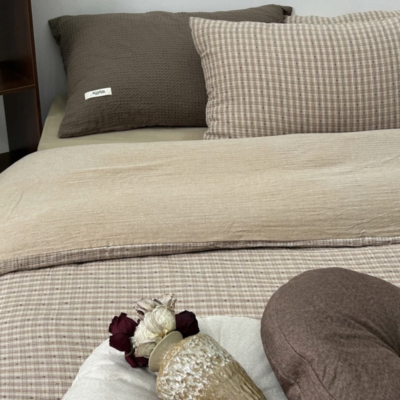 商品名称:(总)双层纱家居 2025新款AB版拉链款全棉纯棉色织提花双层纱四件套-摩卡星冰乐
