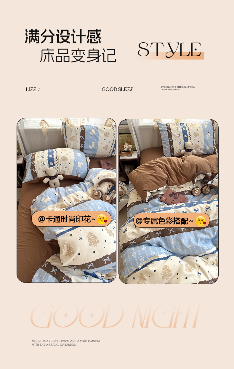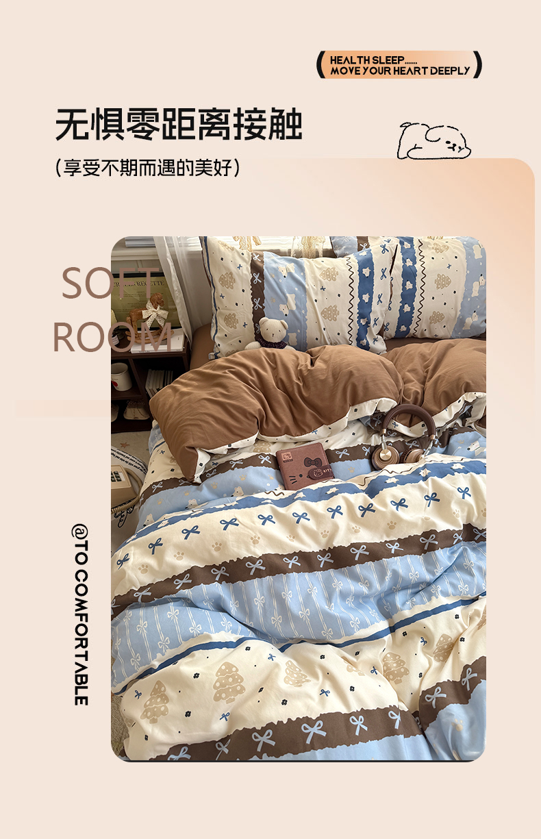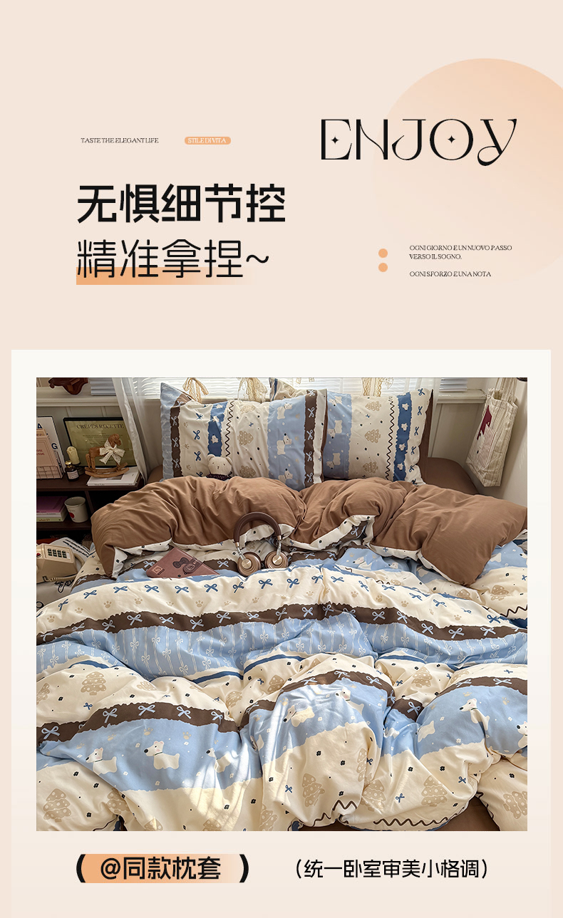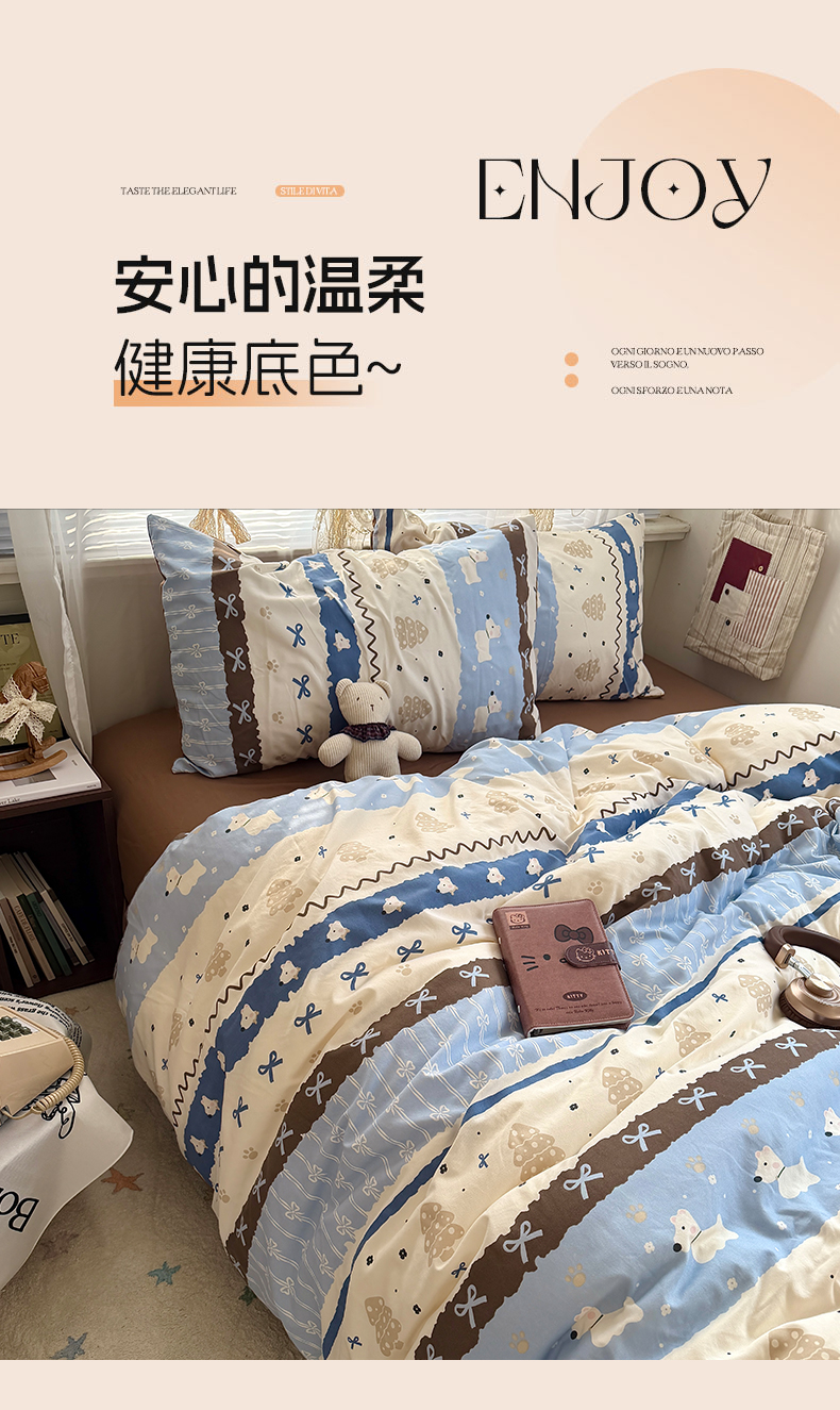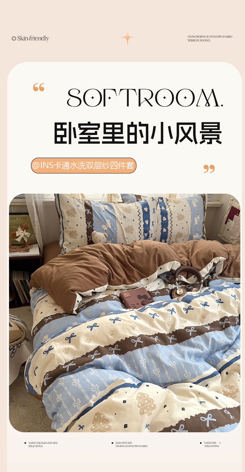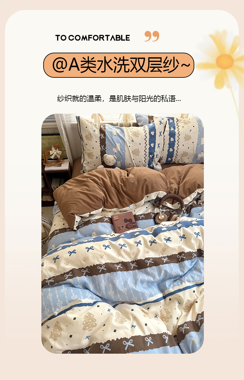 当前位置: 91家纺网 > 商品网购 > 床品套件 > 四件套 > 双层纱四件套 > 原素 2026新款小清新水洗双层纱四件套 排排阿奇