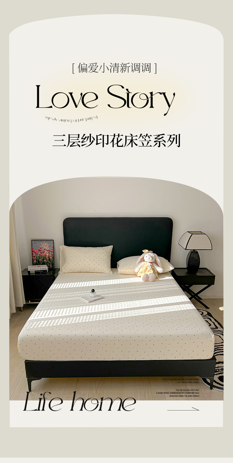 • 91家纺网 家纺一手货源 找家纺 韩巢家纺 2026新款三层纱单床笠热销款防滑床笠单件 彩波波