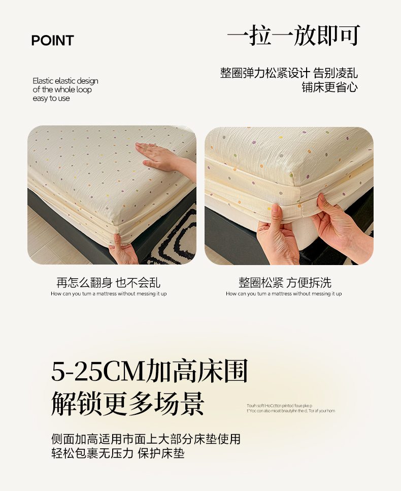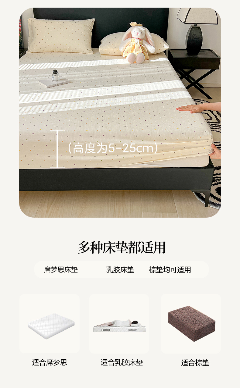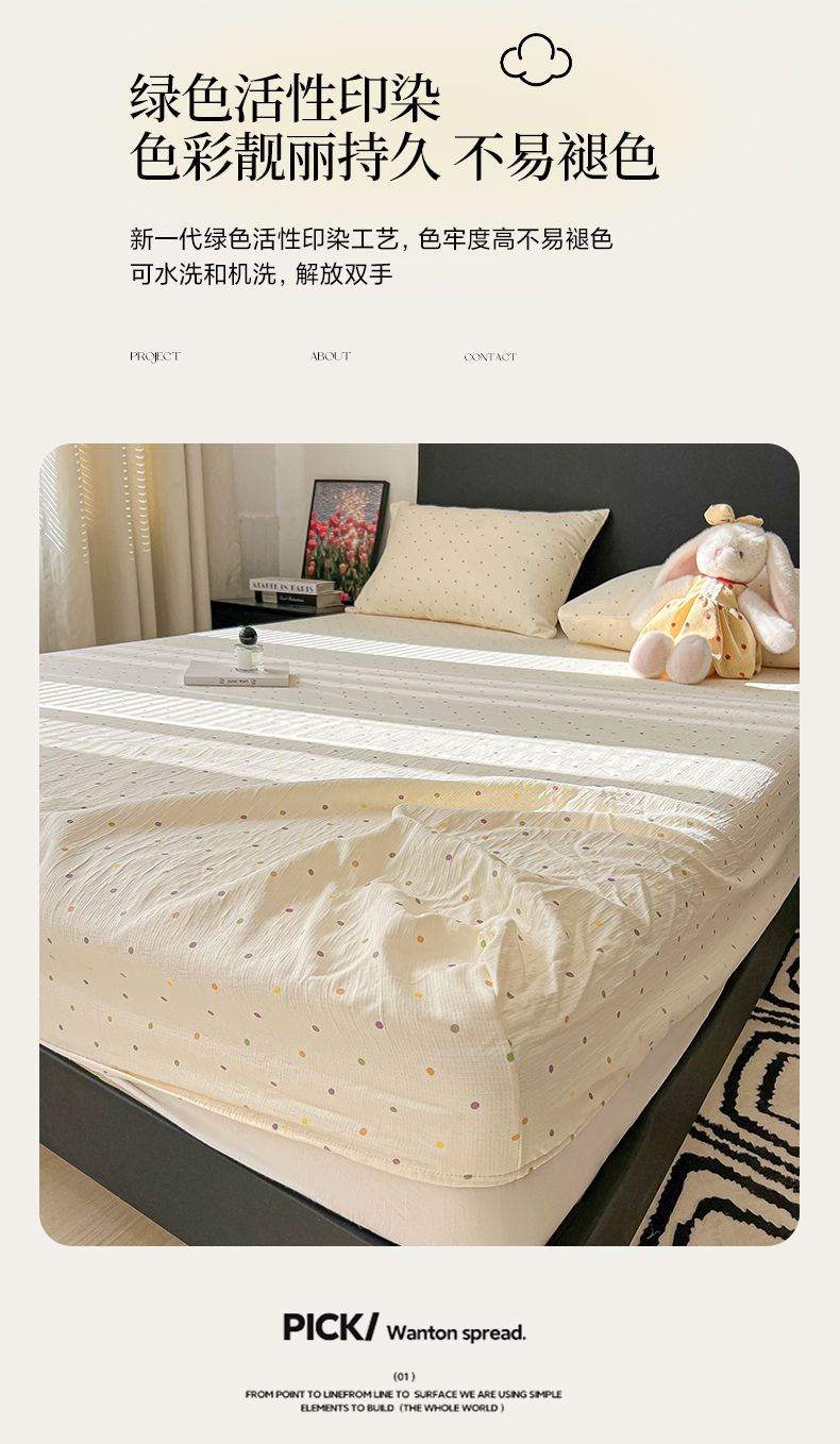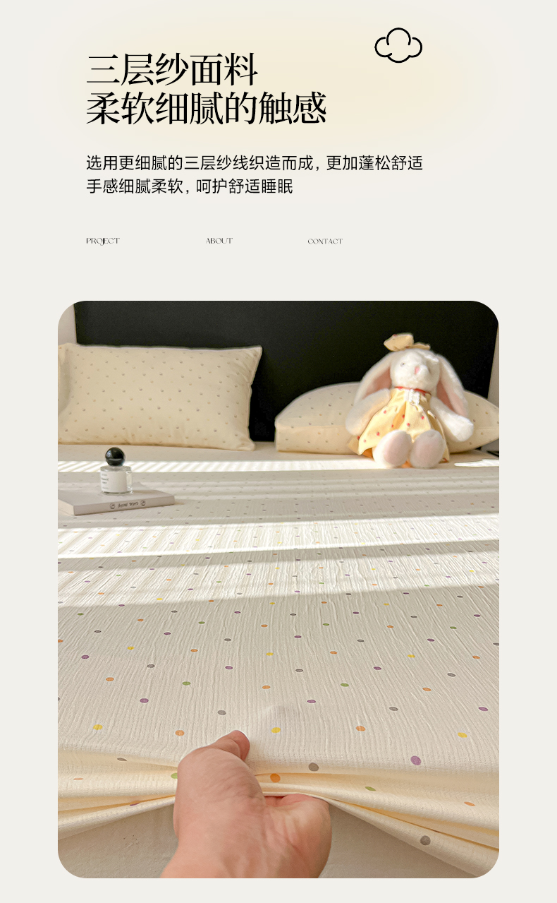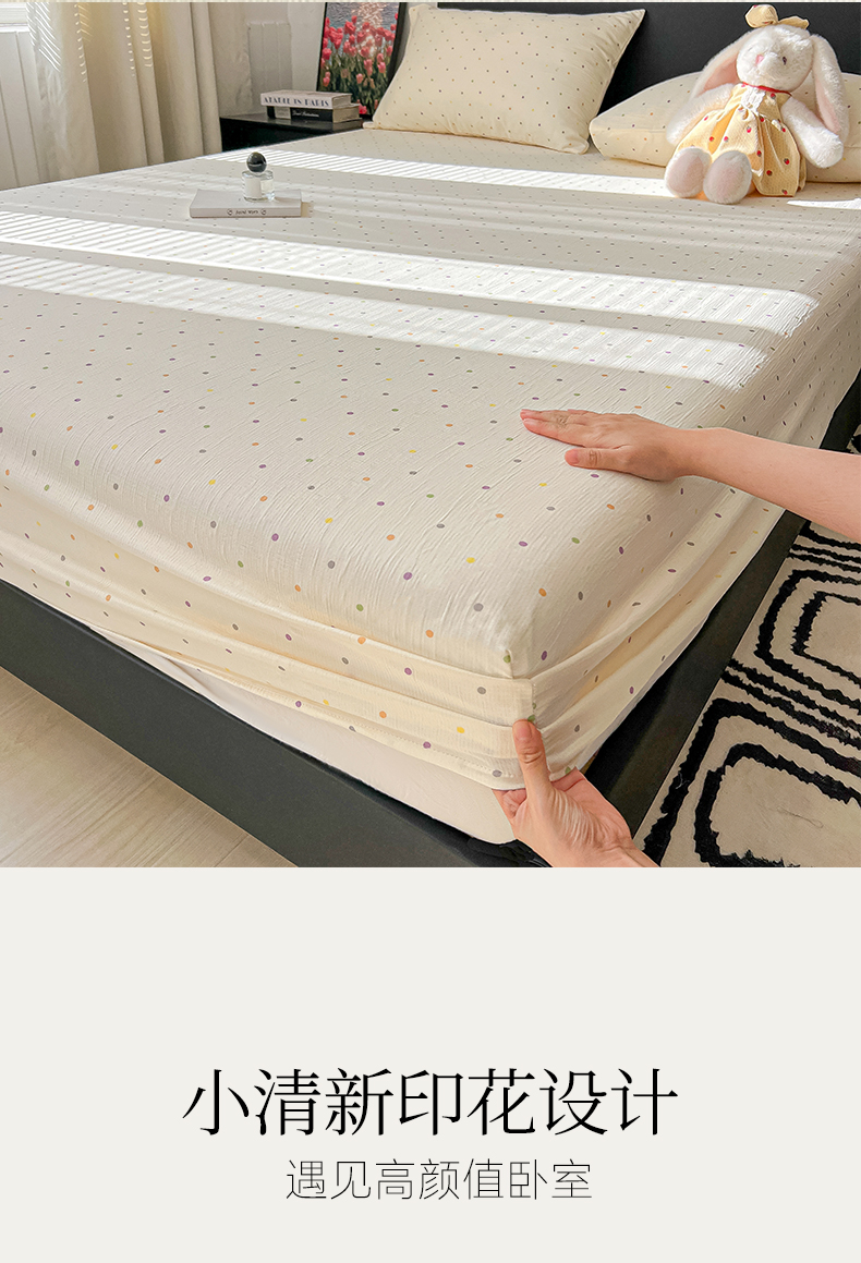 韩巢家纺 2026新款三层纱单床笠热销款防滑床笠单件 彩波波